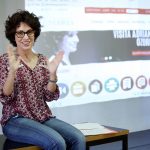 El encuentro con la actriz Adriana Ozores, ganadora de un premio Goya a la mejor interpretación femenina de reparto por la película “La hora de los valientes” (Antonio Mercero, 1998), fue coordinado por la profesora de Producción Audiovisual, Rocío Gago, y por el coordinador del Grado en Comunicación Audiovisual, Nicolás Grijalba.
