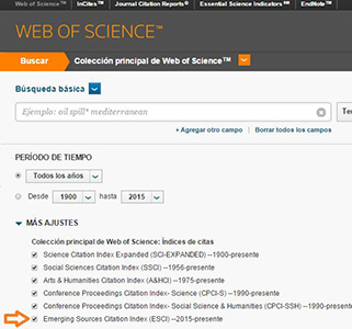 Desde hace pocos días la plataforma de acceso a la Web of Science incluye una nueva base de datos que se añade a los tradicionales índices de citas de este recurso: Emerging Source Citation Index (ESCI), con una cobertura que comienza en 2015.
