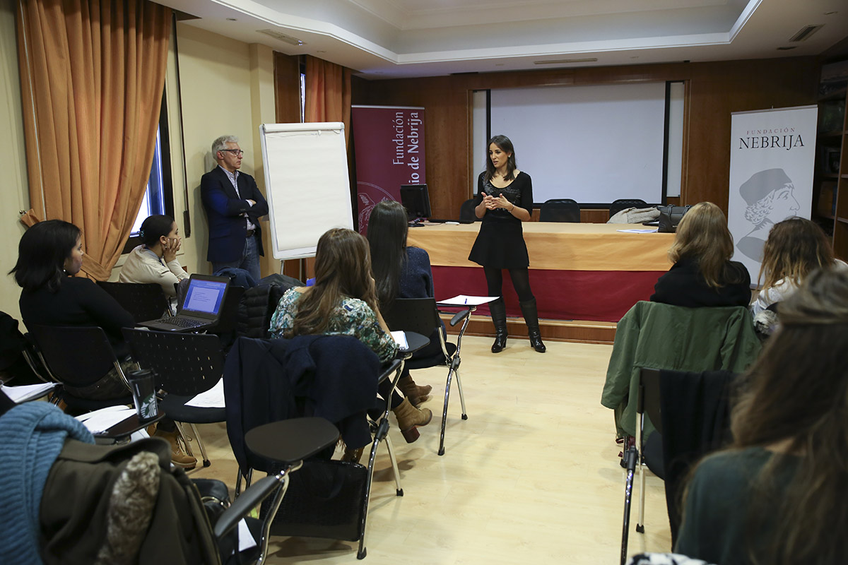 Lorena García Díez es presentadora y directora de Las Noticias de La Mañana de Antena 3 y ha protagonizado hoy martes 24 de noviembre un encuentro en la Fundación Nebrija con los alumnos del Máster en Periodismo en Televisión. Presentada por el profesor del máster y periodista de Antena 3, Francisco Suárez, Lorena García contestó todas las dudas de los asistentes desde su mirada profesional y joven del periodismo y de los medios de comunicación.