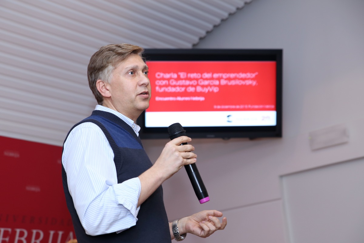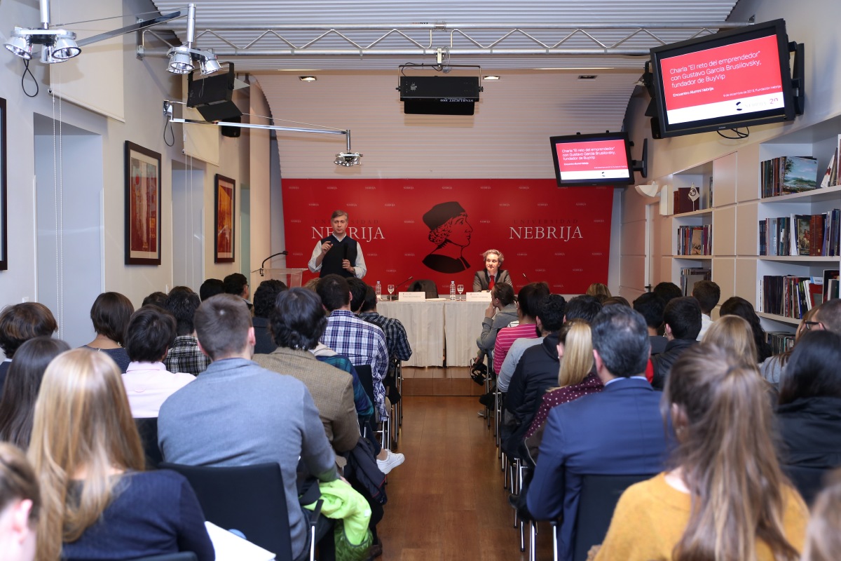 Los antiguos alumnos y los estudiantes de la Universidad Nebrija tuvieron la oportunidad, este miércoles 9 de diciembre, de disfrutar de una clase magistral sobre cómo emprender con el fundador de BuyVip y actual CEO de Klikin, Gustavo García Brusilovsky.