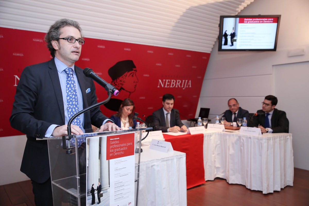 Fernando Tomé, decano de la Facultad de Ciencias Sociales, fue el encargado de inaugurar la jornada: “La influencia positiva que tiene la universidad en la empleabilidad es obvia, pero en el caso del Derecho, aún más notable. En el 2014 los abogados eran la segunda profesión de graduado con menor porcentaje de desempleo”. Ana Quintana Jiménez, directora del Área de Derecho de la Universidad Nebrija, tras agradecer a los ponentes su asistencia, se dirigió a los alumnos: “Sois el foco de esta jornada, vosotros sois los que de verdad podéis sacar provecho de esta ponencia”.