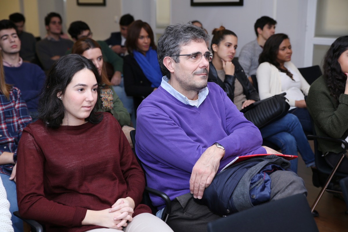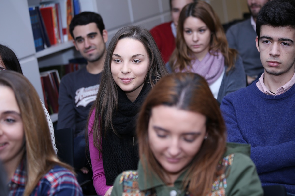 Jesús Santa-Barbara, subdirector de la Dirección General de Registros y Notariados del Ministerio de Justicia, habló de su experiencia laboral en sus (numerosos) puestos de trabajo: “En vuestro área hay muchísima competencia, pero también muchísimas áreas, desde las oposiones, hasta la universidad o la abogacia. Es importante tener buenos resultados académicos y plantearos las metas muy claramente”, aconsejó a los futuros egresados.