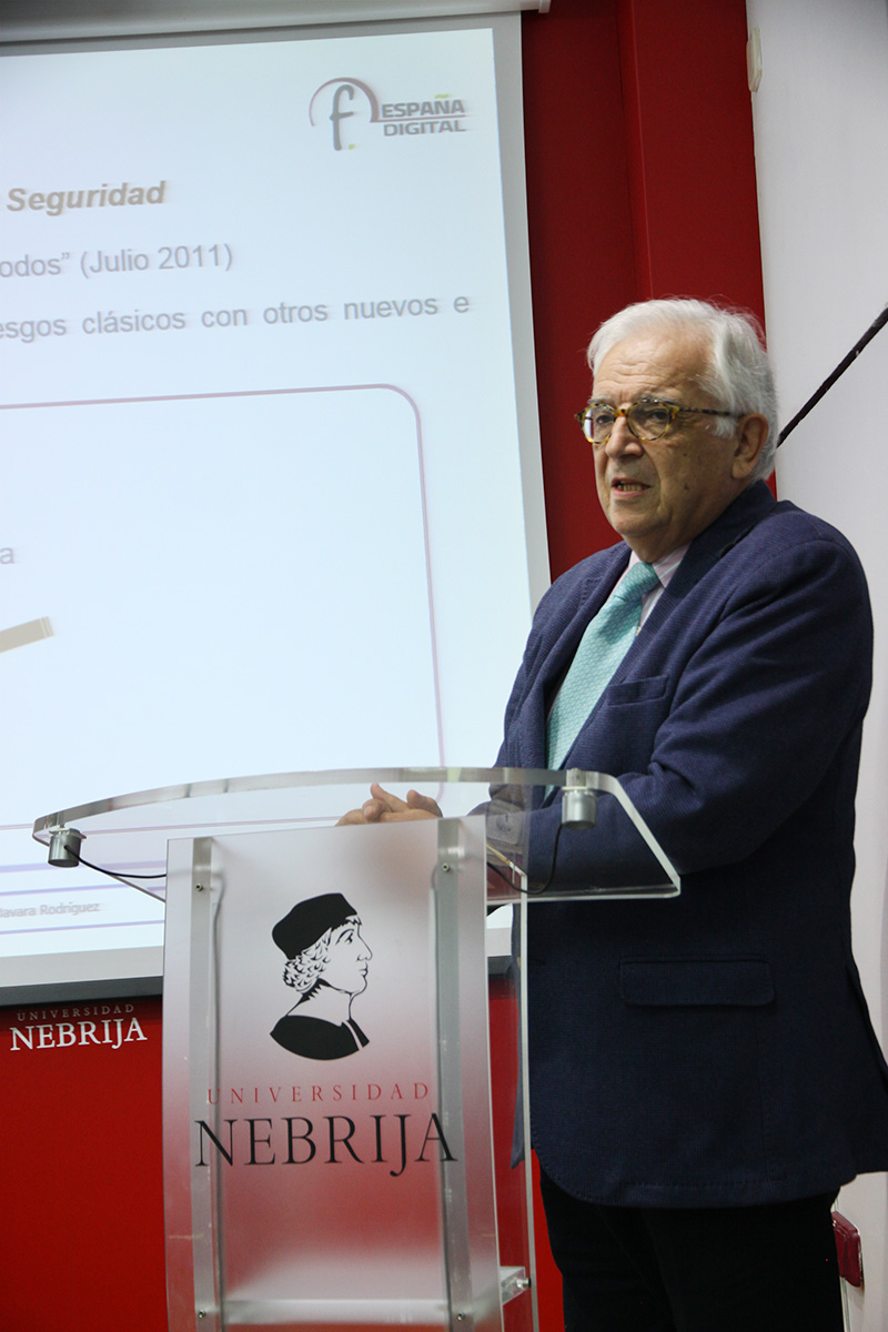 Durante la jornada se expusieron temas como la inteligencia empresarial, seguridad en infraestructuras críticas y materias como la geoestratégica relacionada con Siria y el Estado Islámico, todo ello a cargo de Gustavo Diaz Matey y David Odalric de Caixal, profesores de la Universidad Nebrija, y Marceliano Gutierrez Rodríguez, ex director de la Academia General de Policía de Ávila. También participó el general Fernando Davara que tuvo una interesante y actual aportación sobre ciberseguridad.