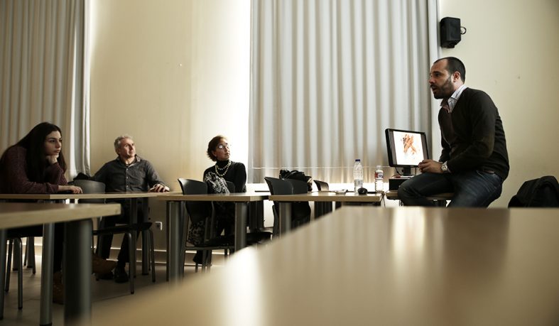 A partir de una primera contextualización del comisariado artístico como disciplina teórica, y de algunos ejemplos de exposiciones que han marcado puntos de inflexión en nuestra forma de entender el arte contemporáneo, Delgado se adentró en su propia experiencia comisarial, ofreciendo a los alumnos y profesores interesantes detalles de su trabajo a lo largo de los últimos años. Desde la exposición “Sinergias. Arte Latinoamericano actual en España” de 2010, “Objetos de Deseo” en el Museo de Artes Decorativas, la emblemática “Las puertas de Uaset” en Tabacalera, la última exposición antológica de la obra de José Manuel Ciria de las muchas comisariadas por Delgado de este artista, hasta su último trabajo, “Teatrorum” de José Luis Serzo en el DA2 Domus Artium de Salamanca, terminando por su actual participación en la feria ArtMadrid al frente del proyecto One Project por segundo año consecutivo, Delgado Mayordomo desgranó detalles de su trabajo que permitieron conocer en profundidad los retos del comisario.