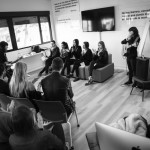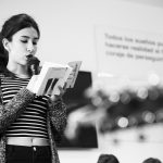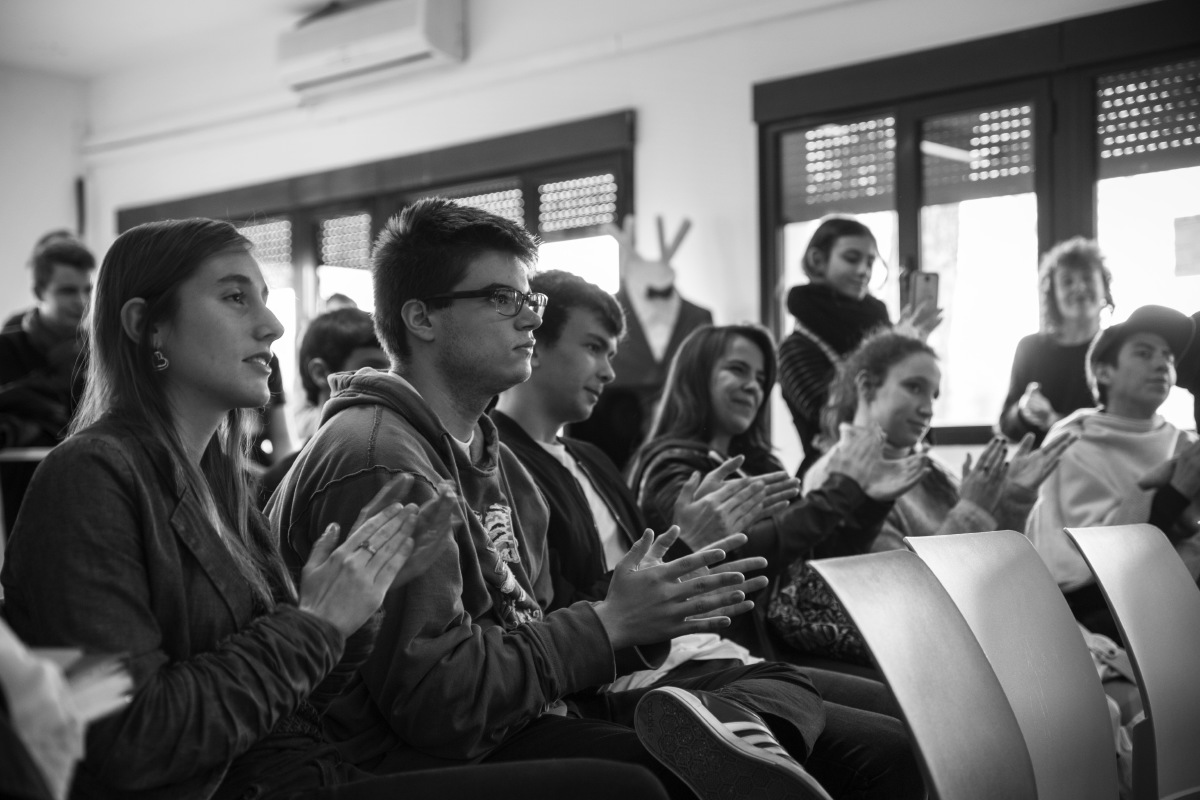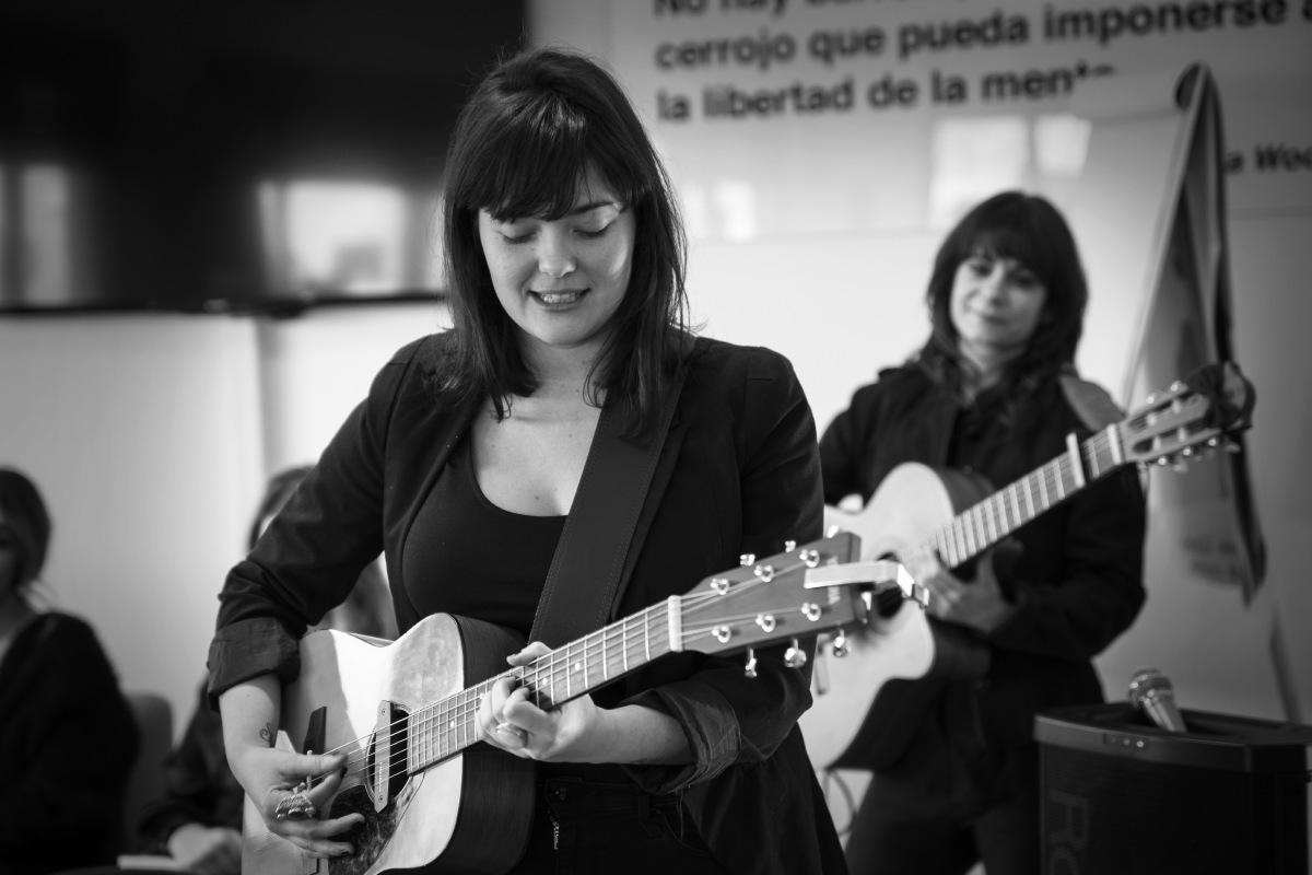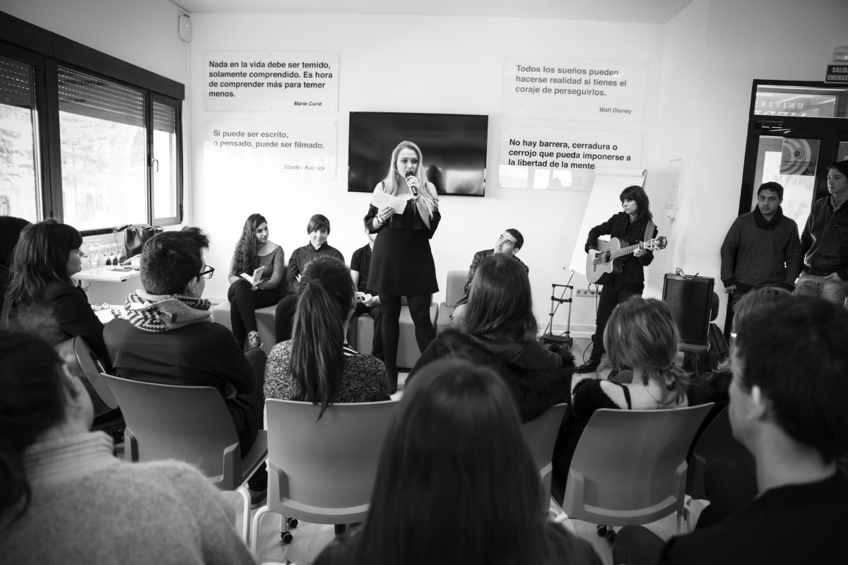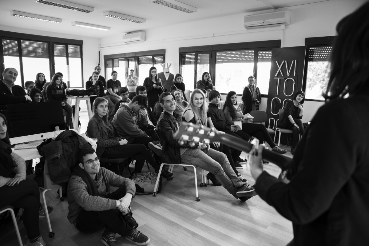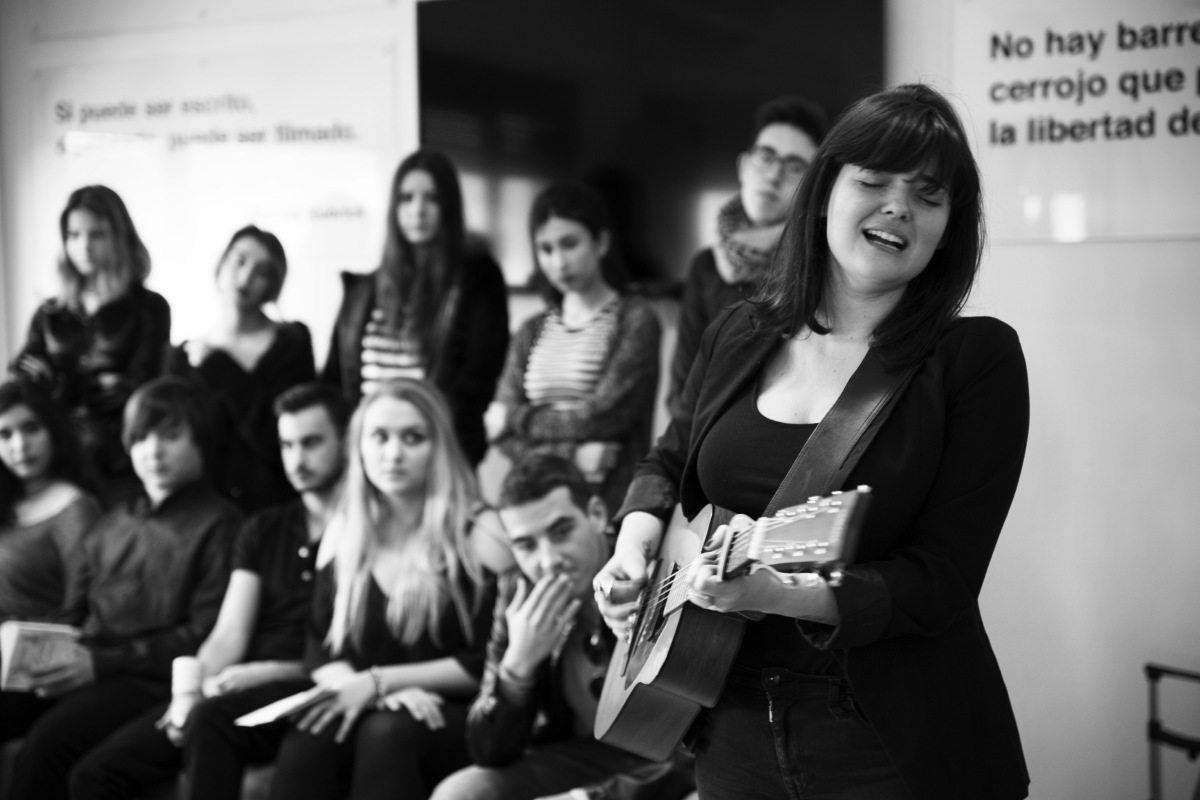 “En mi mar solo hay un pez y está pensando en mudarse”, “Entiende que mis sueños pesan muchísimo, de ahí la forma de mi almohada”, “Nos quisimos a muerte y acabamos matando todo lo que queríamos”, “Caer en las alturas de inexorables críticas y amaneradas virtudes”… Los alumnos, uno por uno, fueron leyendo sus textos, poesías, microrrelatos, genialidades que recordaron a las Greguerías de Ramón Gómez de la Serna… Y para acompañar a las palabras, la presentación contó con la colaboración especial de Diana Zahé y Mäbu, dos artistas que pusieron música a esta jornada.