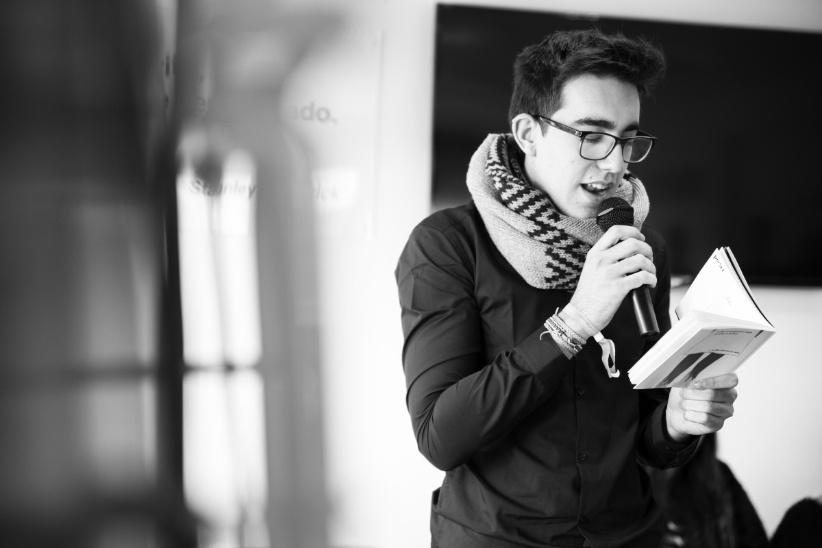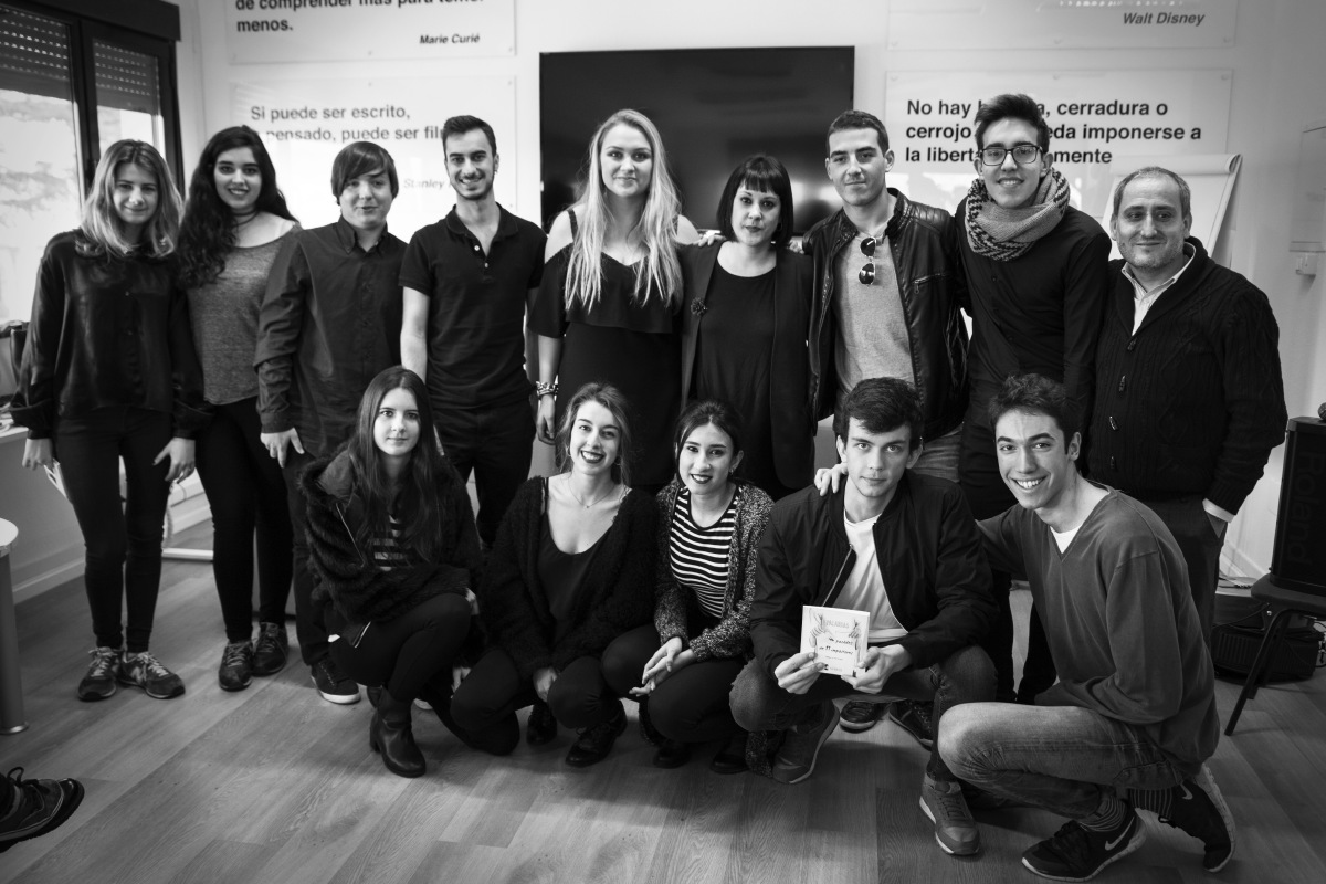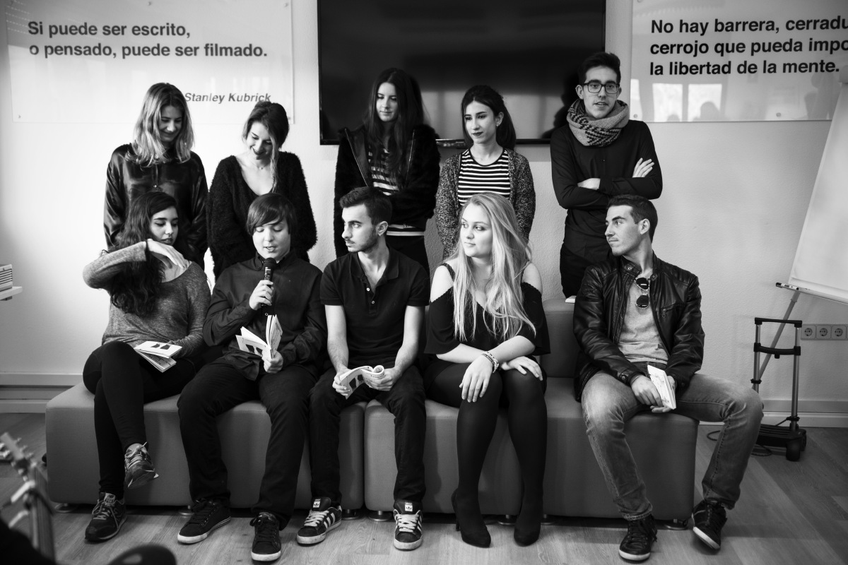 En total 11 estudiantes, “11 impostores”, que lograron emocionar al público asistente: Alejandro Aloy Vidal, Belén Blanco cañas, Rubí Monserrat Borbolla García, Cristina de la Morena Martín, Julia de las Heras Blanco, Gabriela Galdón López-Quesada, Isabel Martín Almoguera, Alejandro Martínez Mosquera, Enrique Robayna Benítez, Claudia Vázquez Calzón y Luis Velasco Herrera. Todos ellos son alumnos de la asignatura de Escritura Creativa, impartida por la profesora Irene G Punto.