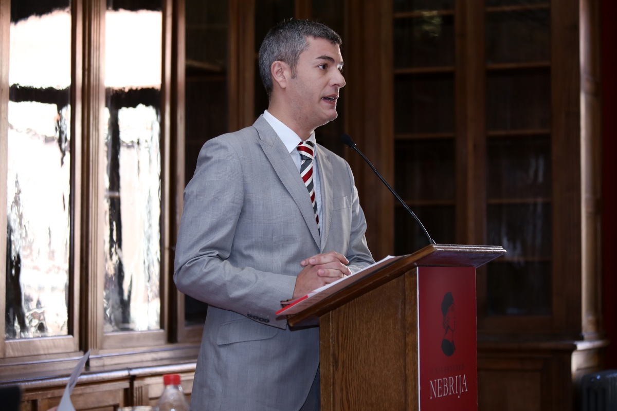 El rector Juan Cayón inauguró el acto y dio la bienvenida a todos los asistentes. Aseguró que esta Universidad está comprometida con la educación y la investigación. Además, destacó la importancia que tiene el idioma español en esta institución, no en vano el nombre de Nebrija viene del humanista Elio Antonio de Nebrija, autor de la primera gramática castellana.