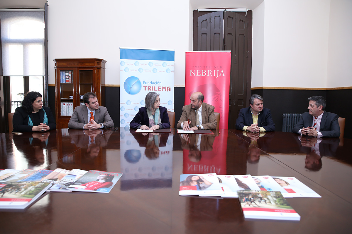 En la firma también estuvieron presentes Juan Antonio Escarabajal, director del Departamento de Desarrollo Universitario y Marketing de la Universidad Nebrija, Ana Agud, gerente de la Fundación Trilema, Juan Luis Posadas, responsable de desarrollo de programas académicos, María Vaíllo, coordinadora de la Cátedra Nebrija-Santander en Inteligencia Ejecutiva y Educación, Martín Varela, director de los Programas de Coaching de la Fundación Trilema, y Teresa Puchades, coordinadora de Escuelas de la Fundación Trilema.
