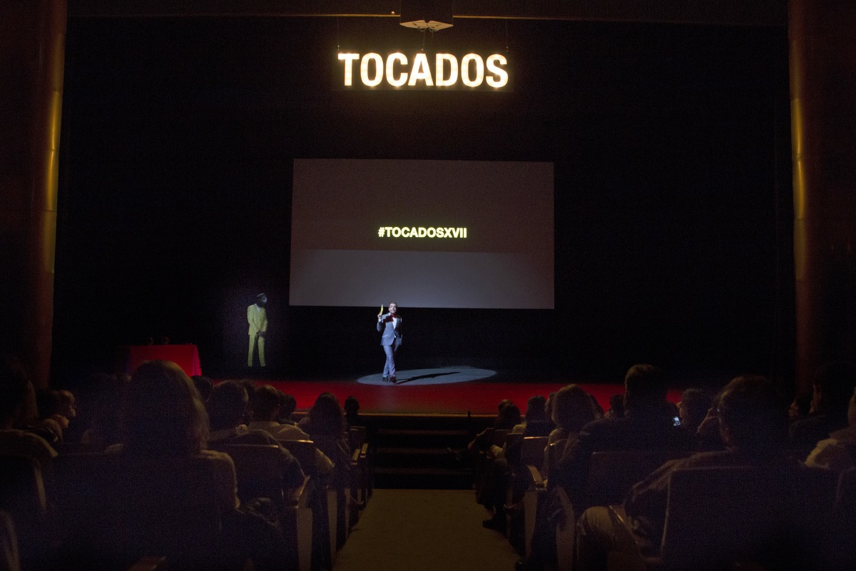 El Círculo de Bellas Artes de Madrid acogió la decimoséptima edición del Festival Jóvenes Tocados por la Publicidad este jueves 5 de mayo organizada por los alumnos de la Facultad de Ciencias de la Comunicación, bajo la temática de la inspiración. Una edición que apostó por la innovación tecnológica y que convirtió a Tocados en el primer festival a nivel internacional co-presentado por un holograma, que acompañó durante toda la gala al otro presentador, el alumno de Doble Grado de Artes Escénicas y Comunicación Audiovisual, Joaquín López-Bailo.