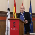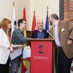 Juan Cayón, rector de la Universidad Nebrija, Lorenzo Sánchez, en representación de la cátedra Santander, Ana Blanco, subdirectora adjunta de la Dirección General de Tráfico y Esteban Meléndez, de Bono Park, participaron en la entrega de premios, celebrada el viernes 20 de mayo en el Campus de la Dehesa de la Villa.