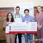 El segundo premio, un viaje a Copenhague para tres personas, fue para Elena Miguel, Amor Jiménez y Julián Sanz, alumnos de 4º curso del Grado en Diseño Industrial. Los estudiantes presentaron el proyecto ECO2, una APP que premia a los usuarios por moverse de manera ecológica, con descuentos en comercios y diversas áreas de restauración y ocio.