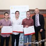 Además, Alejandro Martín, Javier López y Pablo Conlledo, alumnos de 4º curso del Grado en Ingeniería Mecánica+Automóvil, quedaron Finalistas Mención de Honor por ECORING, un proyecto de mejora del protocolo de actuación para restricción del tráfico en el centro de Madrid en días de contaminación excesiva.