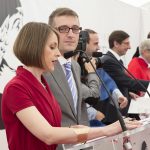 Eduardo García Cancela, Marta Díaz García y José Mª Pérez Mora, en representación de todos los alumnos graduados, dieron las gracias a los profesores por sus consejos, a las familias por su apoyo incondicional y mostraron la gran ilusión que comparten con sus compañeros por salir al mundo profesional y llevar muy lejos el nombre de la Universidad Nebrija.