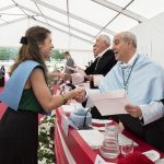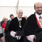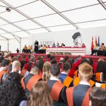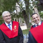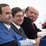 En el segundo acto, Garamendi, hablo de la necesidad de responsabilidad y compromiso “con vosotros mismos, con vuestras familias y con la sociedad” y deseó a los graduados que “el afán de aprender que os transmitido la Universidad no se agote nunca”. También quiso animar a los recién graduados a pesar de las dificultades actuales del mundo laboral: “podéis alcanzar cualquier meta que os propongáis por lejana que os parezca con esfuerzo, ilusión y alegría”.