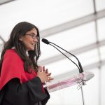 Goirigolzarri compartió enseñanzas personales y profesionales que podrían ser útiles a los egresados con mensajes esperanzadores como que “el futuro lo escriben todos y cada una de las personas que componen la sociedad” para empujar a los alumnos a tomar parte y encontrar su hueco en la nueva etapa que se abre ante ellos con un “permanente espíritu de superación que os llevará a la excelencia”.
