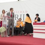 Juan Cayón, en su intervención, felicitó a los egresados porque “vuestros esfuerzos han tenido un resultado exitoso” y destacó el trabajo de los profesores, que “han intentado siempre daros lo mejor que tienen”, en su pasión y afán por la docencia y la investigación. Por su parte, Manuel Villa-Cellino, presidente de la Fundación Antonio de Nebrija, reafirmó la importancia de los graduados: “En Nebrija sabemos que el graduado es la piedra angular; lo que os pedimos es que seáis un ejemplo de trabajo profesional y de vitalidad humana”.