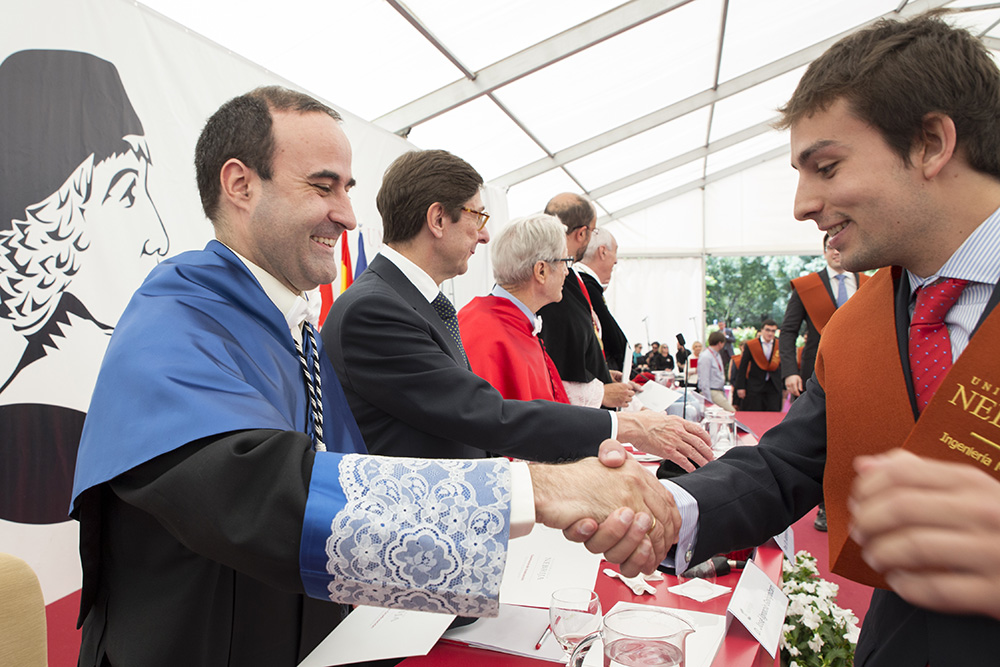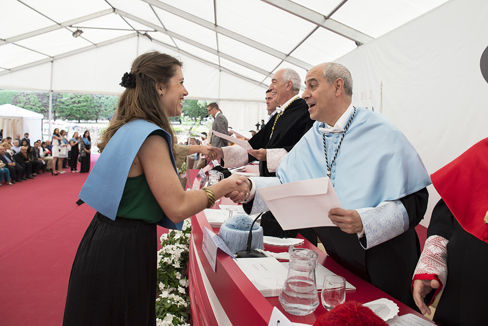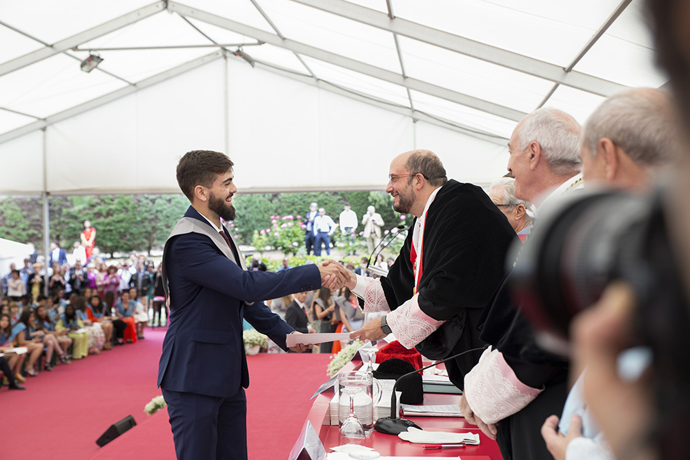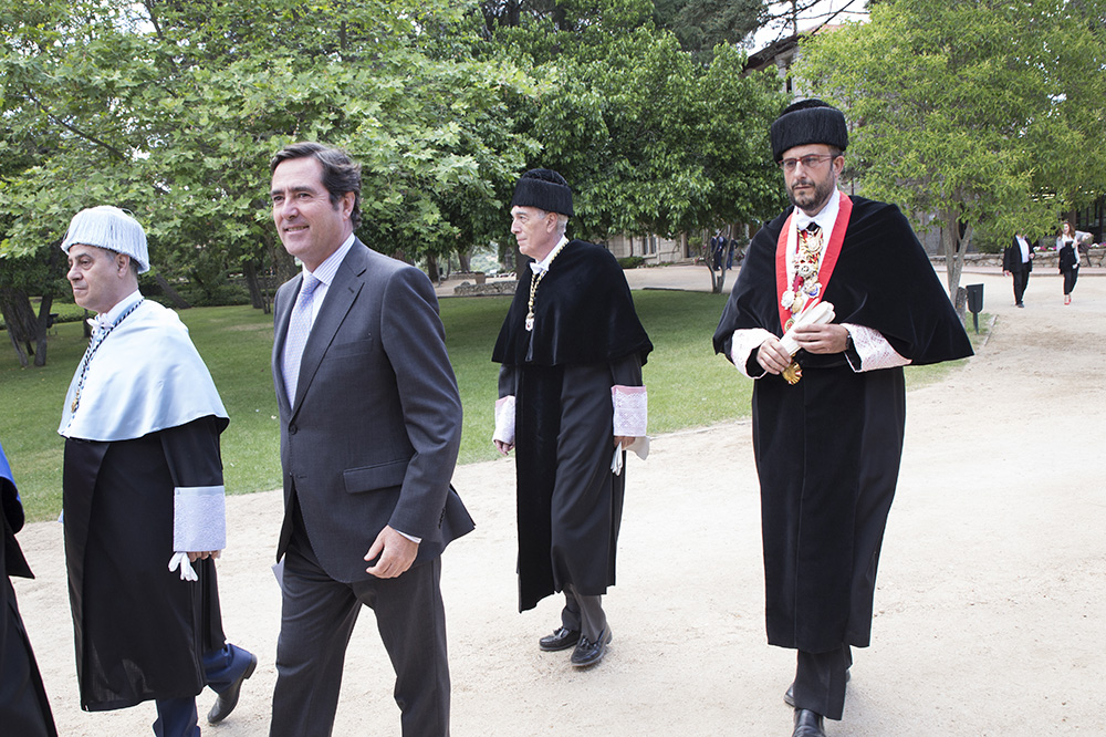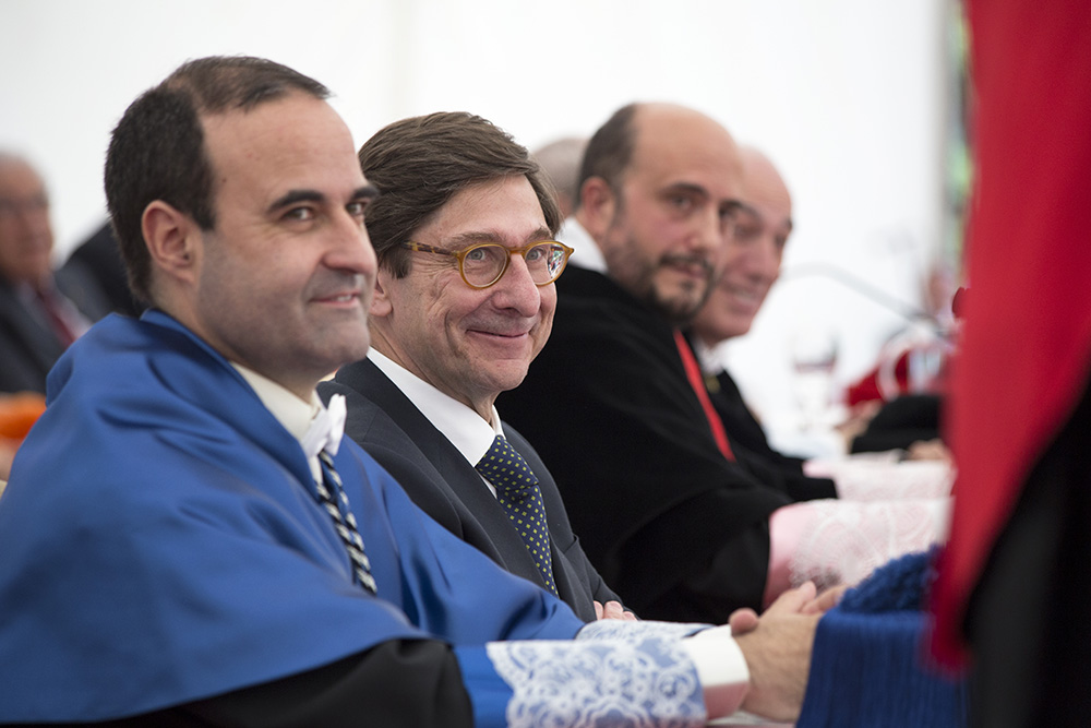 En el segundo acto, Garamendi, hablo de la necesidad de responsabilidad y compromiso “con vosotros mismos, con vuestras familias y con la sociedad” y deseó a los graduados que “el afán de aprender que os transmitido la Universidad no se agote nunca”. También quiso animar a los recién graduados a pesar de las dificultades actuales del mundo laboral: “podéis alcanzar cualquier meta que os propongáis por lejana que os parezca con esfuerzo, ilusión y alegría”.