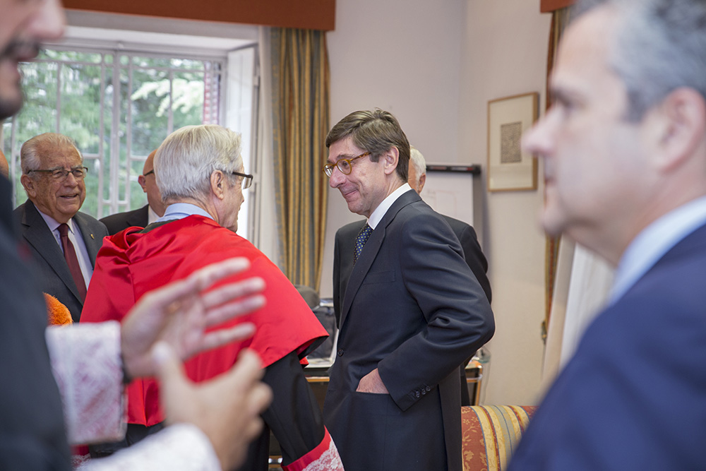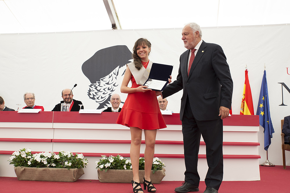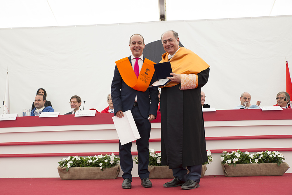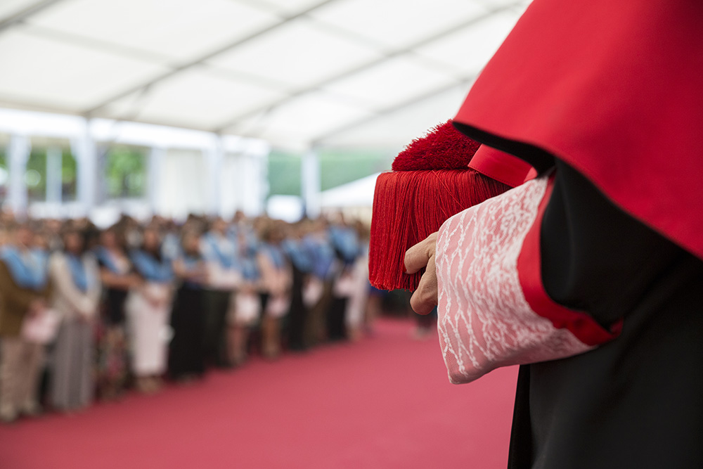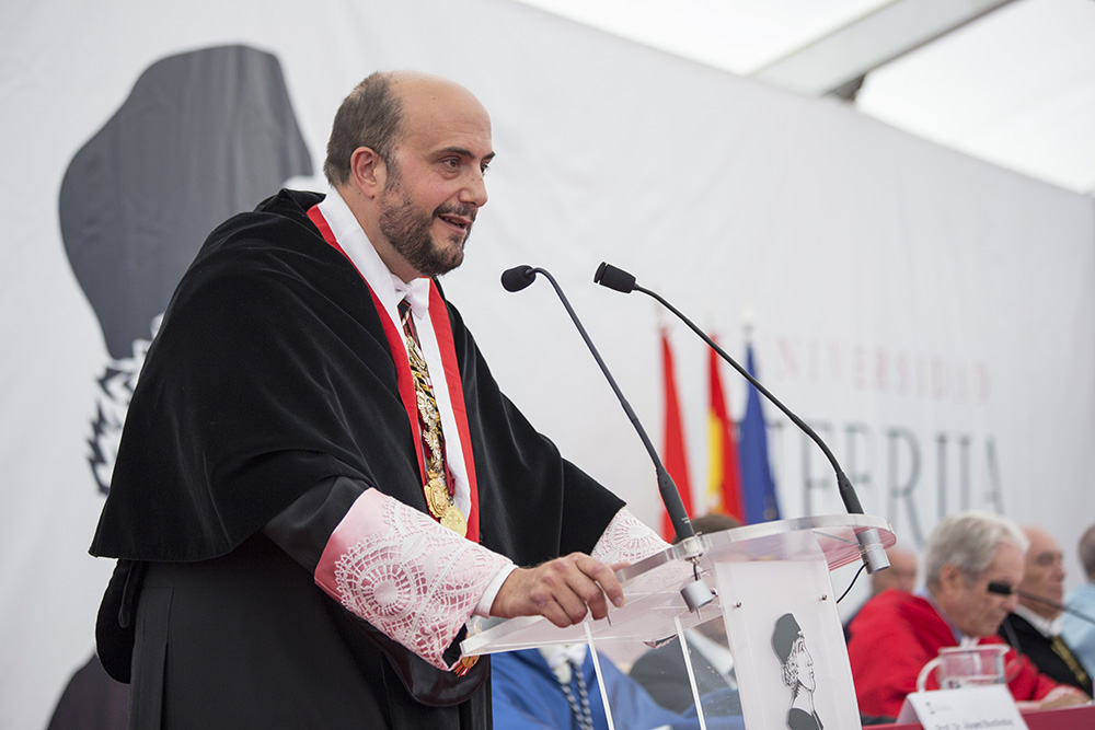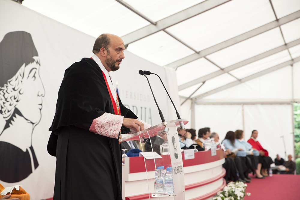 En el segundo acto, Garamendi, hablo de la necesidad de responsabilidad y compromiso “con vosotros mismos, con vuestras familias y con la sociedad” y deseó a los graduados que “el afán de aprender que os transmitido la Universidad no se agote nunca”. También quiso animar a los recién graduados a pesar de las dificultades actuales del mundo laboral: “podéis alcanzar cualquier meta que os propongáis por lejana que os parezca con esfuerzo, ilusión y alegría”.