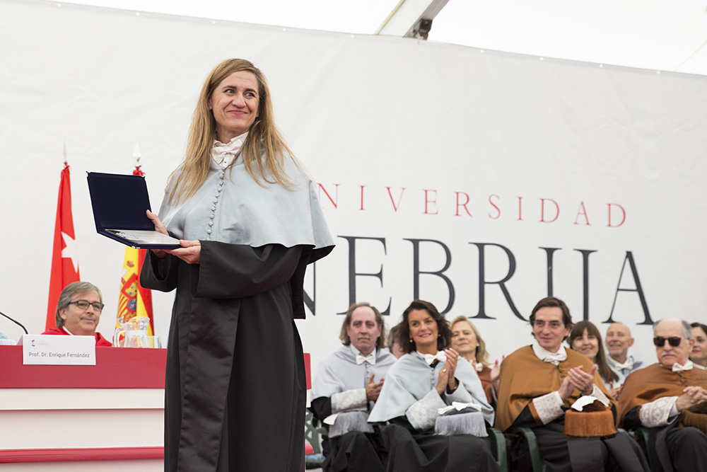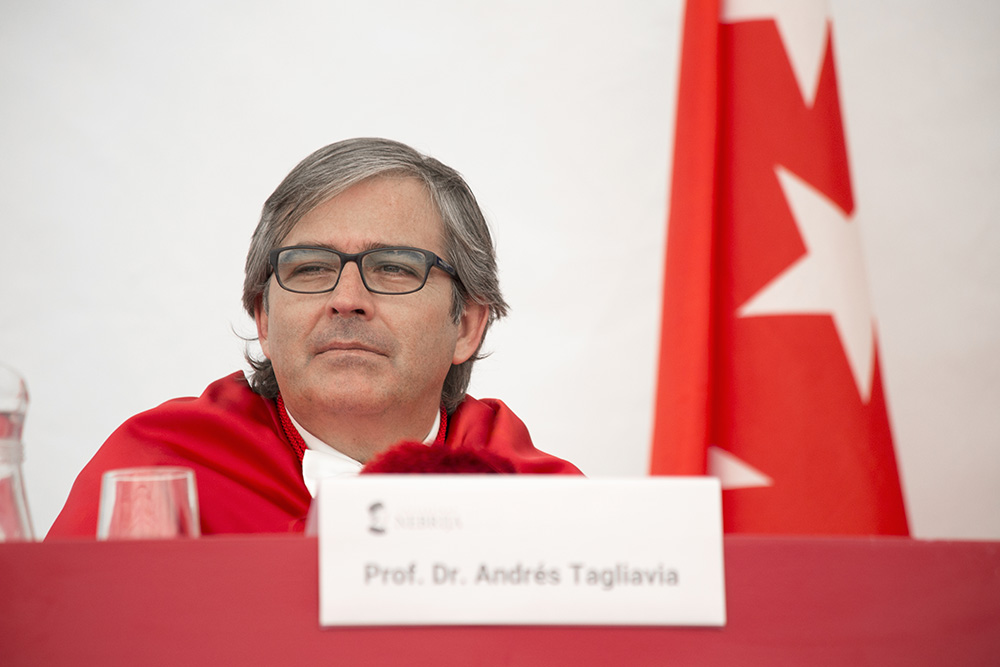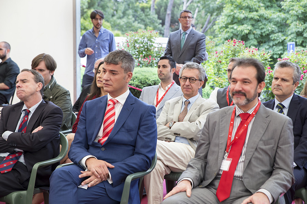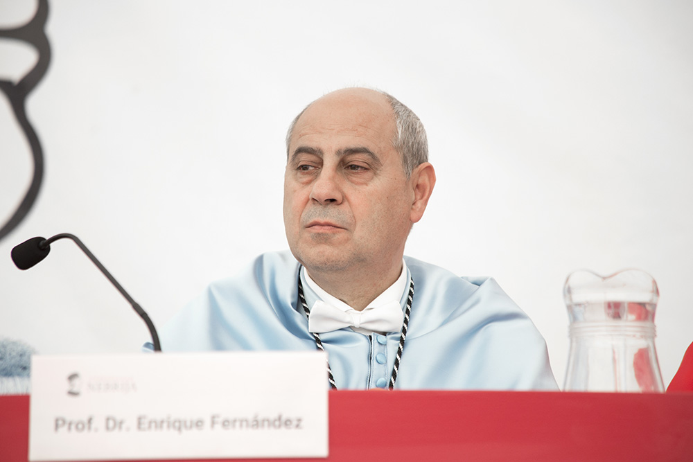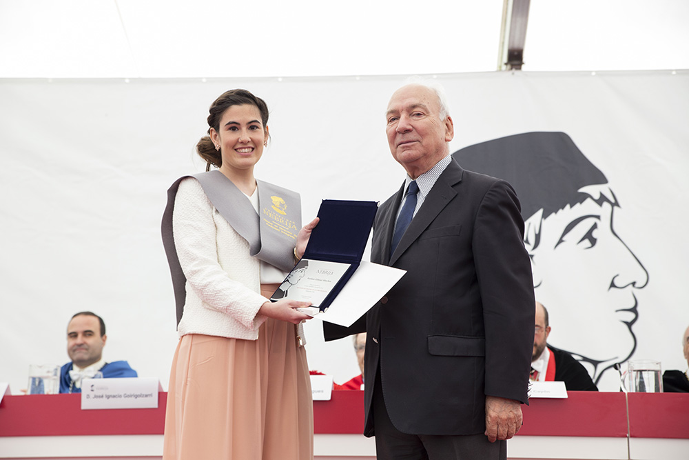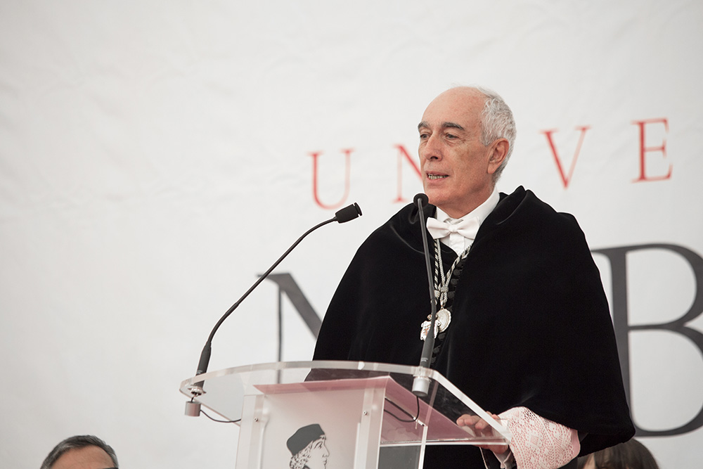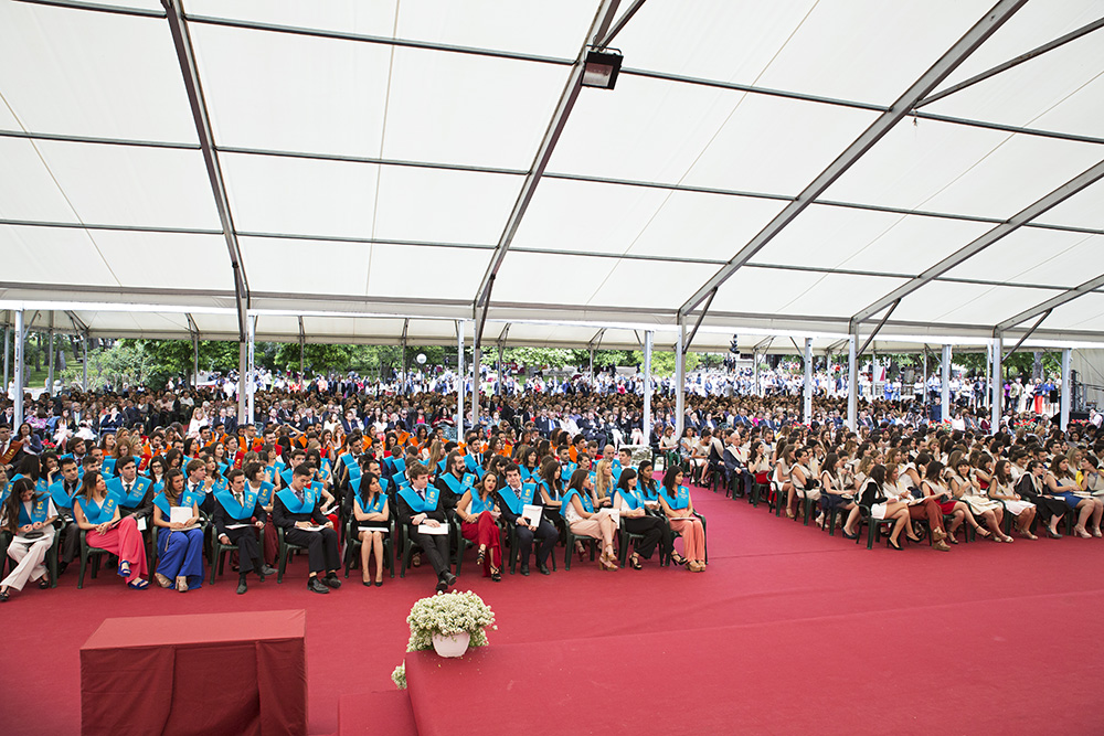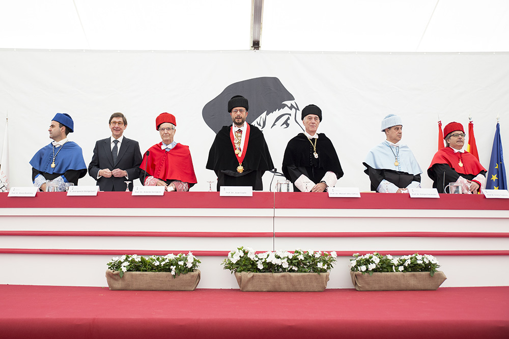 Juan Cayón, en su intervención, felicitó a los egresados porque “vuestros esfuerzos han tenido un resultado exitoso” y destacó el trabajo de los profesores, que “han intentado siempre daros lo mejor que tienen”, en su pasión y afán por la docencia y la investigación. Por su parte, Manuel Villa-Cellino, presidente de la Fundación Antonio de Nebrija, reafirmó la importancia de los graduados: “En Nebrija sabemos que el graduado es la piedra angular; lo que os pedimos es que seáis un ejemplo de trabajo profesional y de vitalidad humana”.