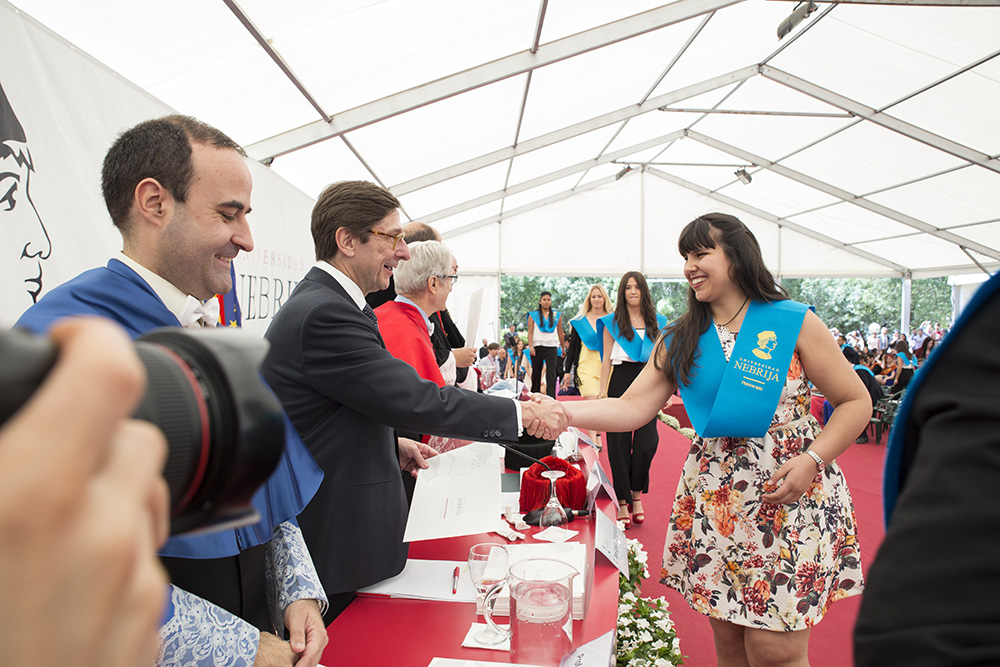 Los alumnos de grado y posgrado de la Promoción 2016 de la Universidad Nebrija se graduaron el pasado viernes 17 de junio, un día emotivo que vivieron junto a compañeros, profesores y familiares para celebrar el éxito conseguido tras horas de trabajo, esfuerzo y dedicación a sus estudios. Debido al gran crecimiento que la Universidad ha experimentado en los últimos cursos, este año, la graduación se dividió en dos actos, uno por la mañana y otro por la tarde, para poder acoger a todos los alumnos y sus acompañantes.
