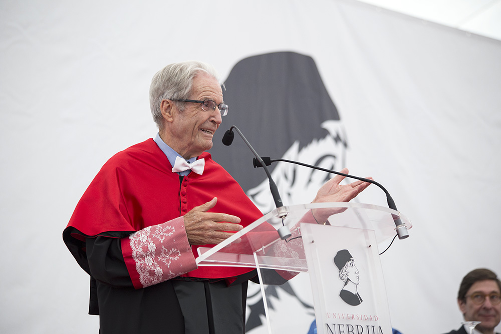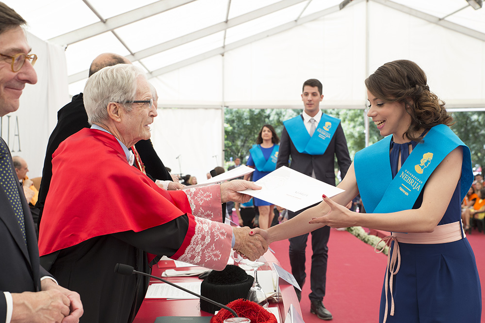Antonio Garrigues, presidente del Patronato de la Universidad Nebrija, también tuvo unas palabras para los graduados. “Estamos en una época de cambios intelectuales muy importantes, y todos los cambios generan oportunidades, todos a largo plazo son para bien”, afirmó Garrigues animando a los recién graduados a afrontar su nueva andadura “en solitario” con el mismo compromiso que han tenido estos años con sus estudios, siendo ambiciosos y desarrollando su profesión lo mejor posible.