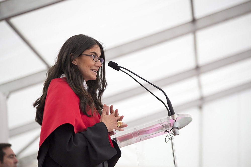 Goirigolzarri compartió enseñanzas personales y profesionales que podrían ser útiles a los egresados con mensajes esperanzadores como que “el futuro lo escriben todos y cada una de las personas que componen la sociedad” para empujar a los alumnos a tomar parte y encontrar su hueco en la nueva etapa que se abre ante ellos con un “permanente espíritu de superación que os llevará a la excelencia”.
