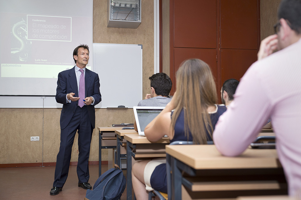 El profesor Luis Isasi, coordinador del Máster en Ingeniería en Vehículos de Competición, impartió la conferencia “El mapeado de los motores de competición”, el lunes 18 de julio en el Campus de la Dehesa de la Villa.
