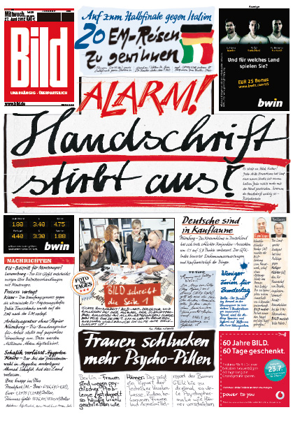 Desde hace tiempo el teclado, los dispositivos móviles, los programas de reconocimiento de voz y otras tecnologías han provocado que tengamos un estilo de vida cómodo con el que podemos prescindir de la escritura manuscrita casi en su totalidad. El tema es tan acuciante que ya en 2012 el diario alemán Bild le dedicó un número y publicó una portada editada por entero en letra manuscrita con el titular de “¡Alarma! La escritura manuscrita se extingue”. Hay estudios en diferentes ámbitos universitarios y clínicos que se están dedicando a la comprobación científica de las repercusiones mentales, sociales y educacionales asociadas a la ausencia de la escritura a mano.