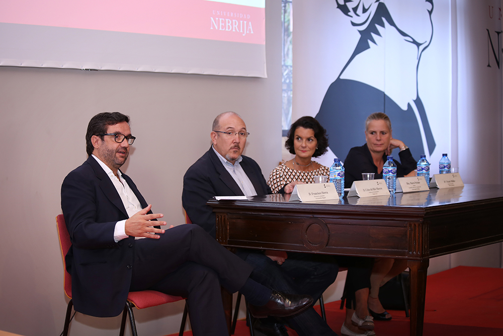 Marta Perlado, decana de la Facultad de Ciencias de la Comunicación, ha presentado esta jornada, acompañada por los representantes de las empresas que colaboran con los diferentes programas: Francisco Sierra Hernando, director de contenidos Atresmedia Digital, Nicole Möller, directora general TBWA/Madrid, y Celso M. del Río Marcos, subdirector de programas Onda Cero. En la sesión también han participado los profesores coordinadores de cada programa.