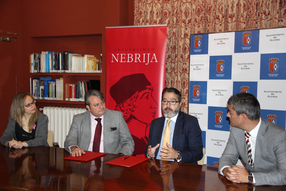 A la firma han asistido Borja Gutiérrez Iglesias, alcalde de Brunete, Nuria Molina, concejal de Educación del municipio, Juan Antonio Escarbajal, director general de Desarrollo Universitario de la Universidad Nebrija, y Javier Sedano, director de Desarrollo Universitario para España.