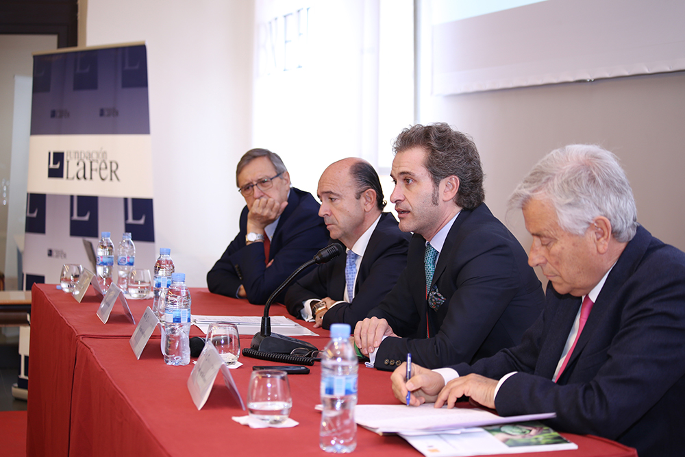 Fernando Tomé, decano de la Facultad de Ciencias Sociales, Manuel Lamela, presidente de la Fundación Lafer, y Jorge Jordana, director del Máster en Gestión de Empresas Agroalimentarias, inauguraron la séptima edición de este programa, el viernes 21 de octubre en el Campus Madrid – Princesa.