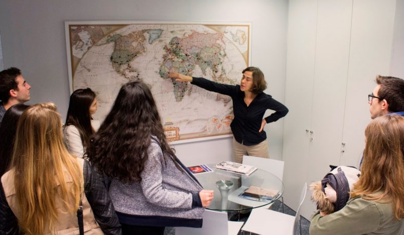 Y es que la dimensión internacional de la agencia es considerable. Un mapa del mundo, perforado por un enjambre de chinchetas, que equivalen a los corresponsales distribuidos por todo el planeta, permitió conocer a los alumnos de Nebrija la cobertura mundial de la Agencia. Profesionales que elaboran cada día un material informativo con el que, aproximadamente, nutren de información al 90% de los medios de comunicación españoles.