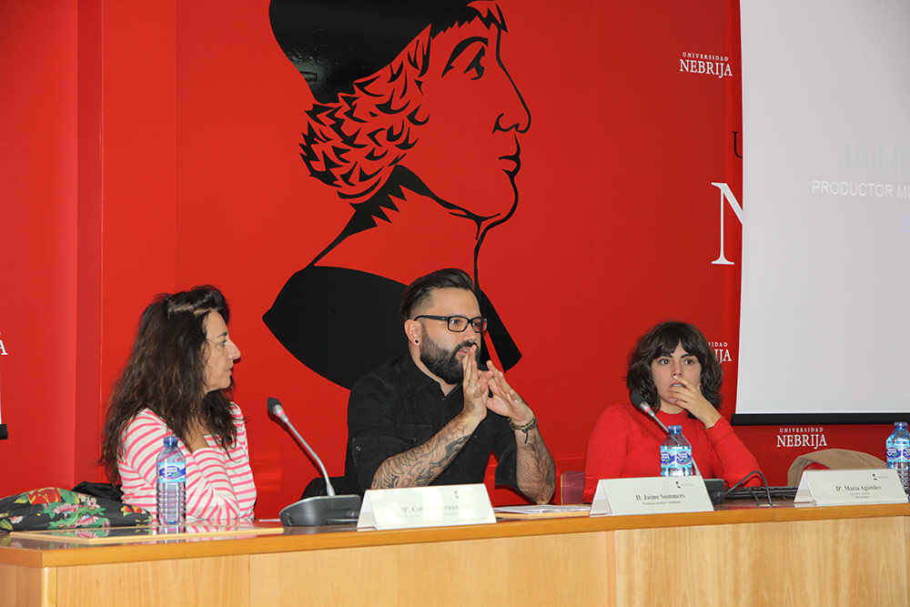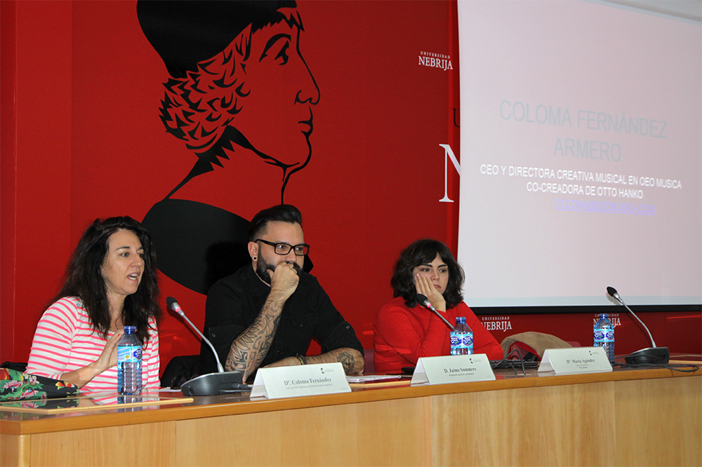 Coloma Fernández Armero, CEO de OEO Música y directora creativa musical; Jaime Summers, productor musical y compositor y María Agúndez, directora creativa en Otto Hanko han visitado la Universidad Nebrija para impartir una conferencia sobre la música que se utiliza en publicidad, cómo se utiliza y el funcionamiento de pequeñas productoras como OEO Música.