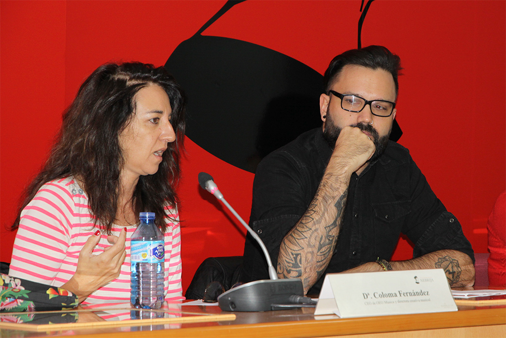 Coloma Fernández ha explicado su papel como una plataforma que conecta a los músicos que crean las piezas para los anuncios publicitarios con las marcas o agencias más grandes de publicidad. Ha querido contar a los alumnos el proceso desde que llega el briefing a la productora hasta que la pieza está terminada, en algunos casos en pocas horas. “El briefing te llega en cualquier momento y de cualquier forma, la comunicación con el cliente es muy delicada y confusa por lo que las referencias que te pueda dar son vitales para saber por qué camino seguir, esas referencias suelen ser otras canciones” ha dicho Fernández.