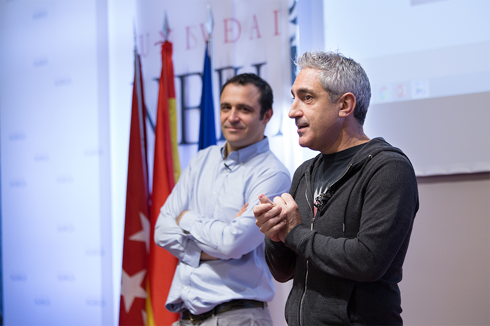Jon Sistiaga ha cubierto numerosos conflictos armados y ha viajados a países “donde la violencia es una forma de vida” y ha explicado a los alumnos cómo salir de una situación en la que se encuentren amenazados o cómo sacar el máximo partido a un entrevistado: “Es necesaria mucha empatía y cercanía para conectar con el entrevistado, el periodista tiene un poco de actor”.