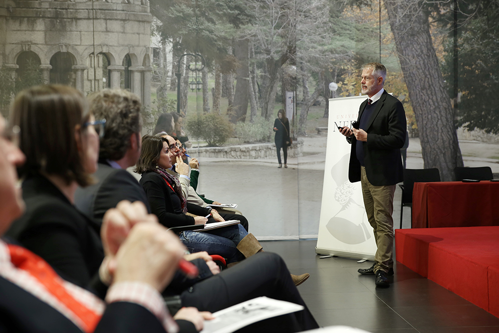 Fernando Tomé, decano de la Facultad de Ciencias Sociales, inauguró la sesión, acompañado de los directores académicos de los programas másteres de Nebrija.