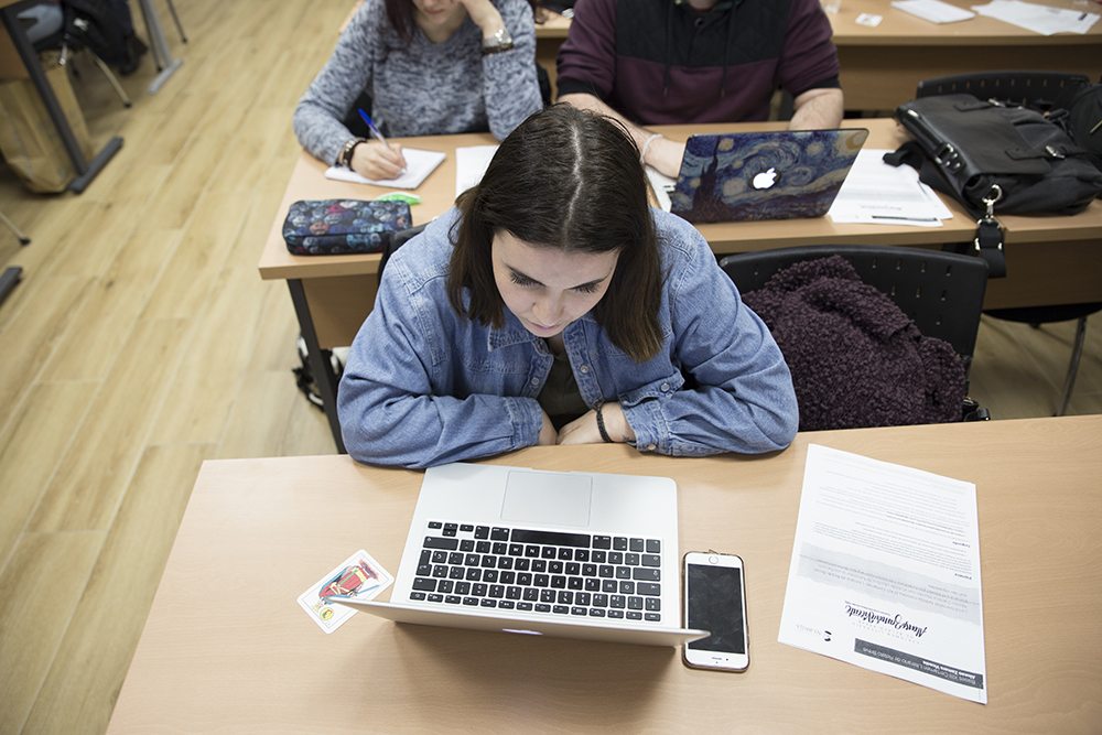 La poeta y periodista animó a los participantes en esta masterclass a asumir el reto de escribir porque “escribir es de valientes”, según aseguró. Y los estudiantes aceptaron el desafío. Cada uno de ellos, a partir de una frase inicial, escribió su microrrelato para compartirlo con todos los participantes.
