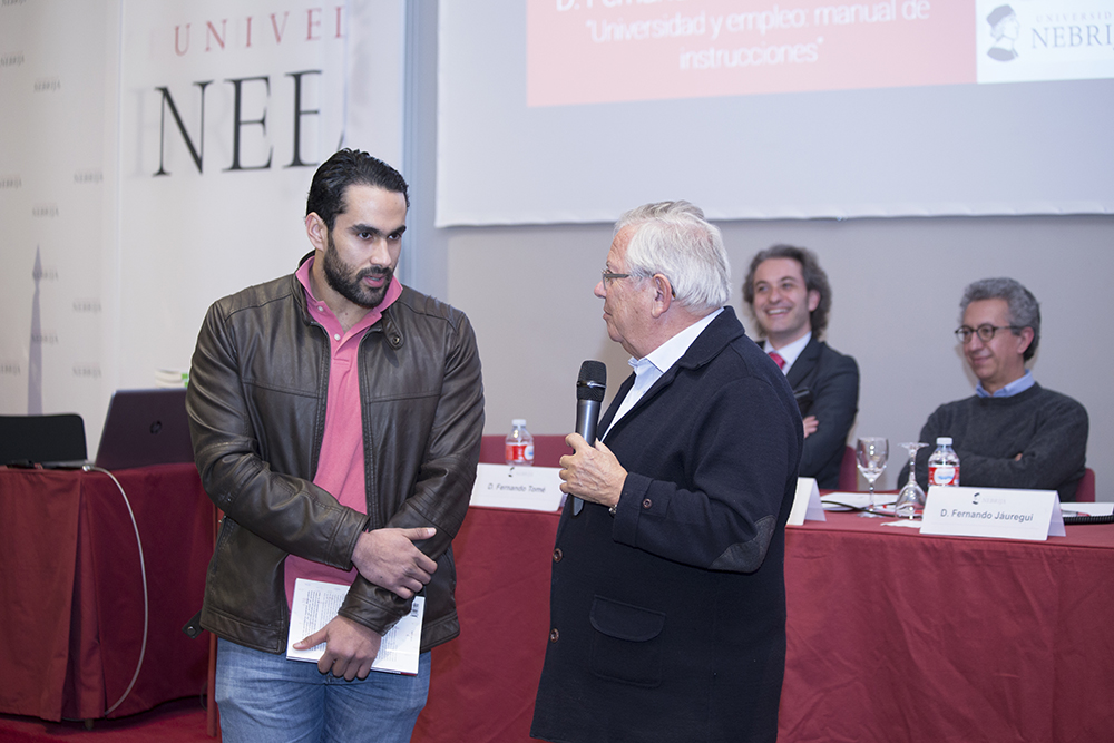 Durante la presentación del libro, Fernando Jáuregui explicó a los alumnos cómo trabajar su marca personal y cómo plantear una entrevista de trabajo para resultar elegido y marcar la diferencia frente a los competidores. A través de ejemplos tangibles y haciendo partícipes a todos los asistentes, Jáuregui fue descubriendo los pasos imprescindibles para conseguir esa marca personal tan necesaria.