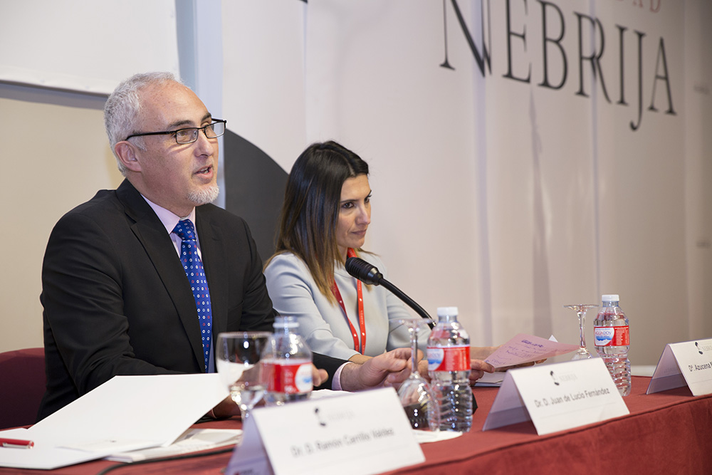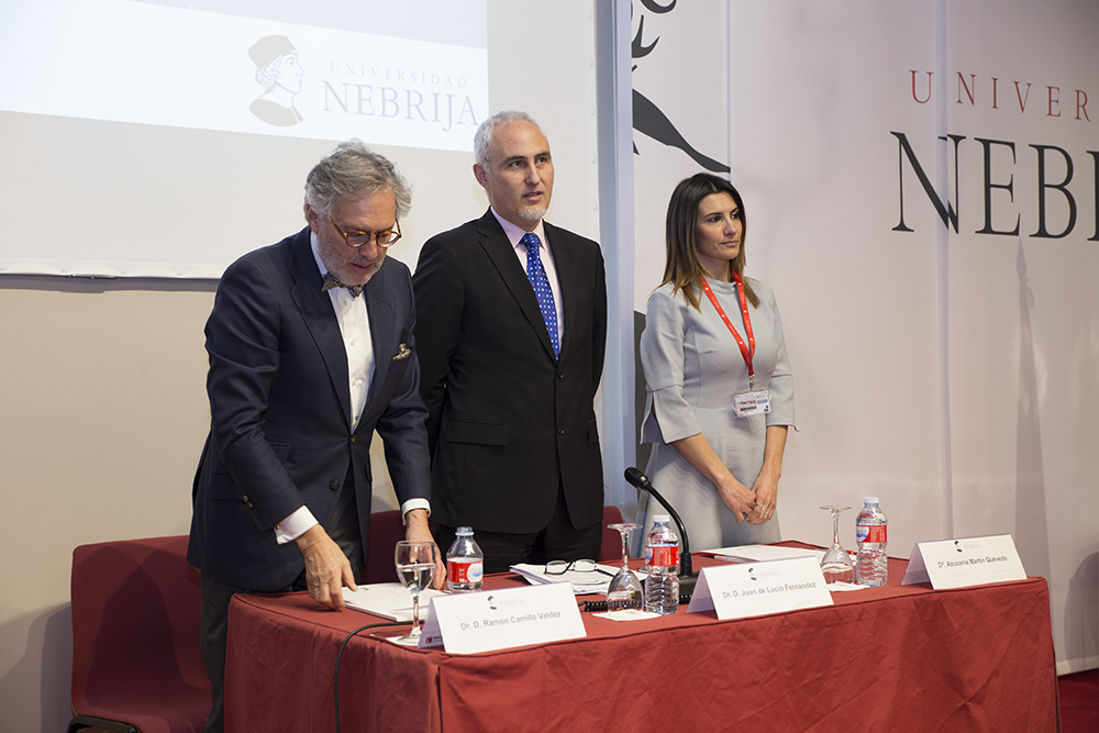 Acompañaron a Ramón Carrillo en este acto de clausura Juan de Lucio Fernández, director del área de empresa de la Facultad de Ciencias Sociales, y Azucena Martín Quevedo, directora del Máster en Administración de Empresas con especialidad en Empresas Tecnológicas y del Máster de Proyectos.