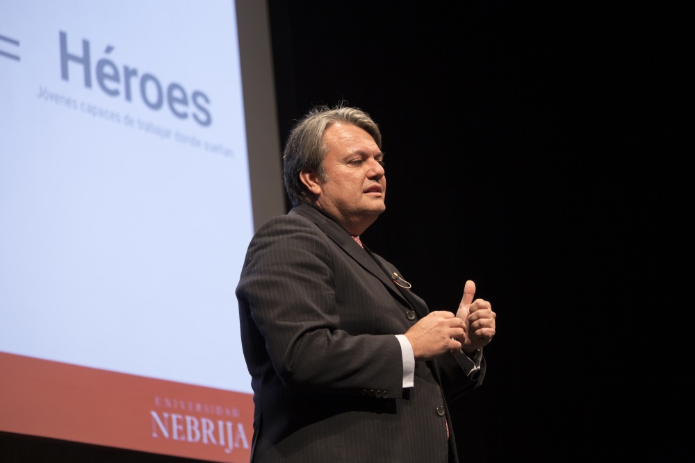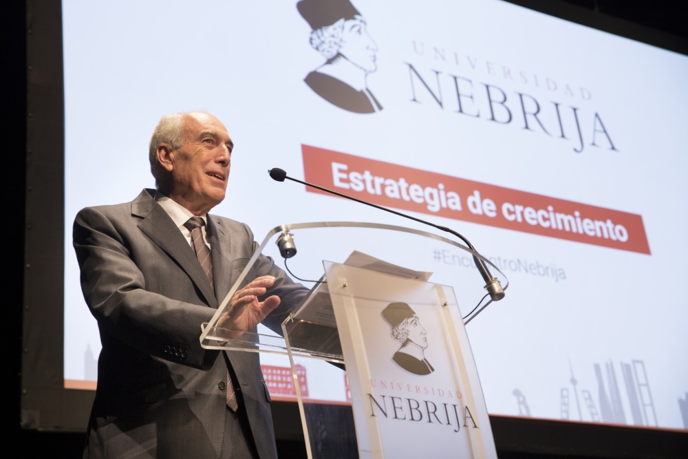 El presidente de la Fundación Antonio de Nebrija, Manuel Villa-Cellino, fue el primero en subir al escenario con un discurso de apertura en el que quiso agradecer el trabajo de todos y animar a seguir por el buen camino iniciado: “Debemos estar contentos, pero queda mucho por hacer”. Villa-Cellino destacó la calidad de los equipos Nebrija que están “coordinados y comprometidos con su trabajo”, lo que permite a la Universidad Nebrija formar parte de “la liga universitaria de la competencia”. El presidente se mostró muy satisfecho con la trayectoria de la institución y añadió que “no hay mejor camino que el del esfuerzo y la dedicación”.