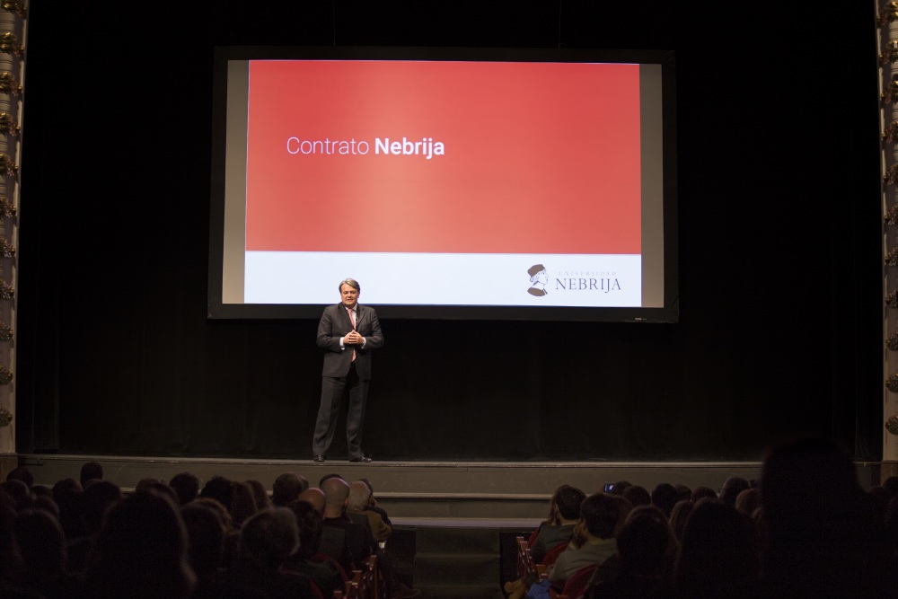 Juan Antonio Escarabajal, director de Desarrollo Universitario, explicó la campaña publicitaria que hará que la Universidad Nebrija esté presente en todos los medios de comunicación. Según Escarabajal, se basará en cinco pilares a destacar en todos los mensajes de la campaña: una enseñanza exigente, formación en empresas líderes gracias a las prácticas, innovación en los programas (ya que muchos de los empleos en los que trabajarán los alumnos todavía no existen), un campus internacional que favorezca el entendimiento y enriquecimiento entre culturas y estancias en universidades extranjeras de gran interés para los alumnos, ya que les forma como profesionales abiertos y responsables.