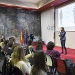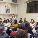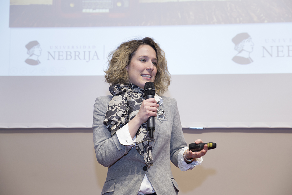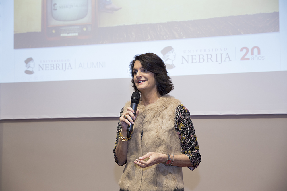 Carmen Solivera, responsable del departamento de Antiguos Alumnos, explicó las ventajas de pertenecer al Club Alumni e invitó a todos a que se unieran para estar más cerca de la Universidad Nebrija que es, “vuestra alma mater con la que siempre podréis contar”.