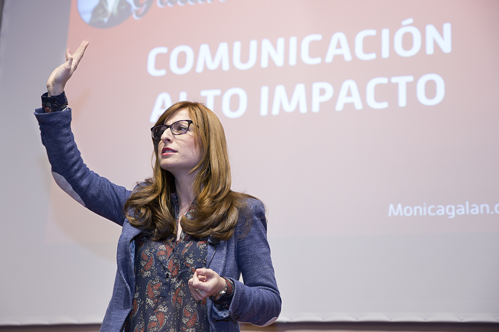 Galán, involucrando al público, consiguió mantener la atención de todos ellos durante su charla con las técnicas que estaban aconsejando utilizar. Para la coach “comunicamos para marcar la diferencia” y es importante establecer esa diferenciación para que la audiencia se quede con el mensaje que estamos transmitiendo. La idea clave que quiso resaltar es que “la audiencia es lo más importante de una presentación, pero normalmente no pensamos en ella”. Ejemplo de ello es el abuso que se suele hacer de una herramienta como el power point, “que debería ser una ayuda para el público y no para el ponente” por eso su uso suele reducirse a diapositivas con mucho contenido que es imposible de seguir si queremos prestar atención al ponente. Al hilo de esta idea, Mónica Galán afirmó que “cualquier presentador que pudiera ser sustituido por un power point, debería serlo”.