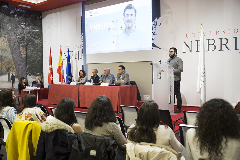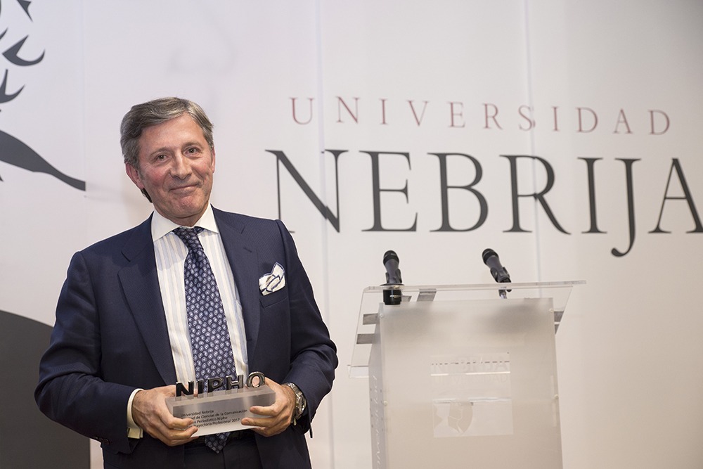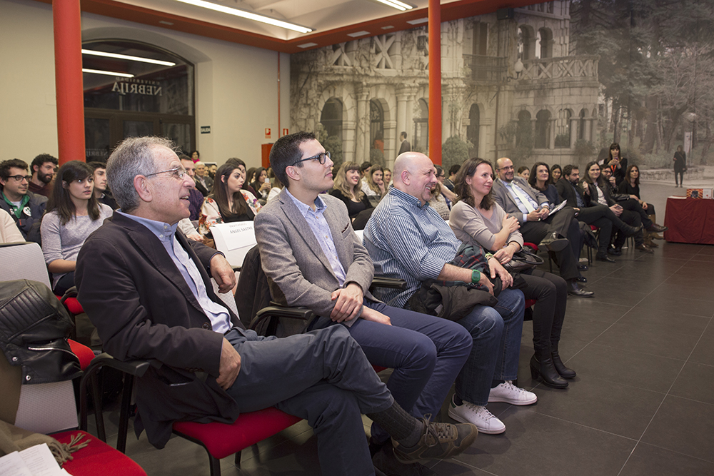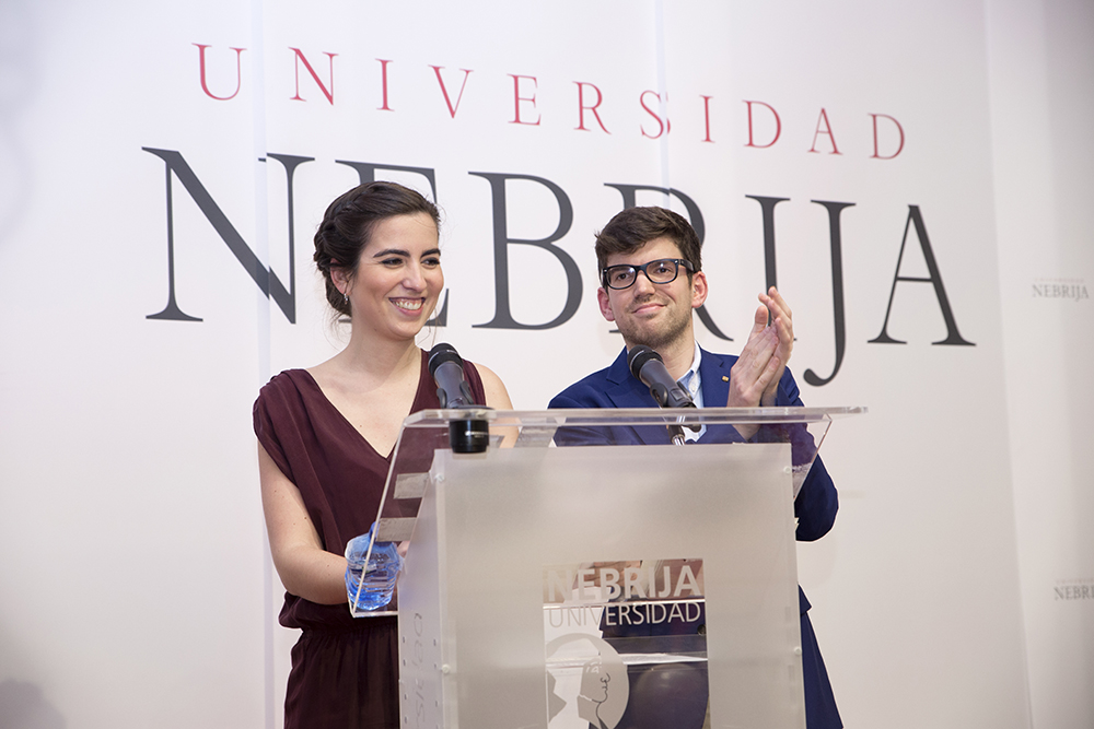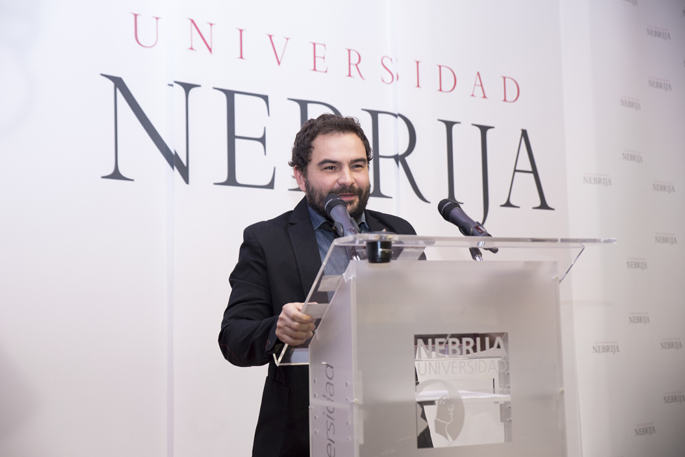 Este año, además, se instauró una nueva categoría de galardón, Premio Mejor Trayectoria Antiguo Alumno, que reconoce el trabajo desarrollado por ex alumnos de la Nebrija y que recayó en Ángel Sastre, periodista especializado en la cobertura de conflictos bélicos. Colaborador de Cuatro, La Razón y Onda Cero, Sastre manifestó el cariño que todavía mantiene con su Universidad y animó a los alumnos allí presentes a trabajar duro y a no conformarse en el desarrollo de su profesión. En este sentido, aprovechó para defender ante el auditorio la función de denuncia social del periodismo allí donde se produzcan desigualdades.
