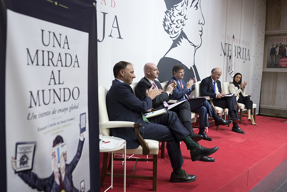 El lunes 6 de marzo tuvo lugar la presentación del libro Una mirada al mundo, en la Universidad Nebrija que contó con la presencia del ministro de Justicia, Rafael Catalá, la exministra de Vivienda Beatriz Corredor y el secretario de Estado de Cultura, Fernando Benzo, junto al vicepresidente del Consejo Rector de la Universidad Nebrija, Joaquín Espallargas. La obra comprende un conjunto de ensayos que reflexionan con una mirada global, desde el punto de vista de los servidores públicos, sobre ámbitos como la geopolítica del mundo, la situación del individuo ante los cambios que se están produciendo en la sociedad y la gestión de los bienes públicos mundiales. Para presentar el libro y a todo el conjunto de autores de los ensayos estuvo el coordinador de la obra, Enrique Cortés, administrador civil, al igual que el resto de los autores.