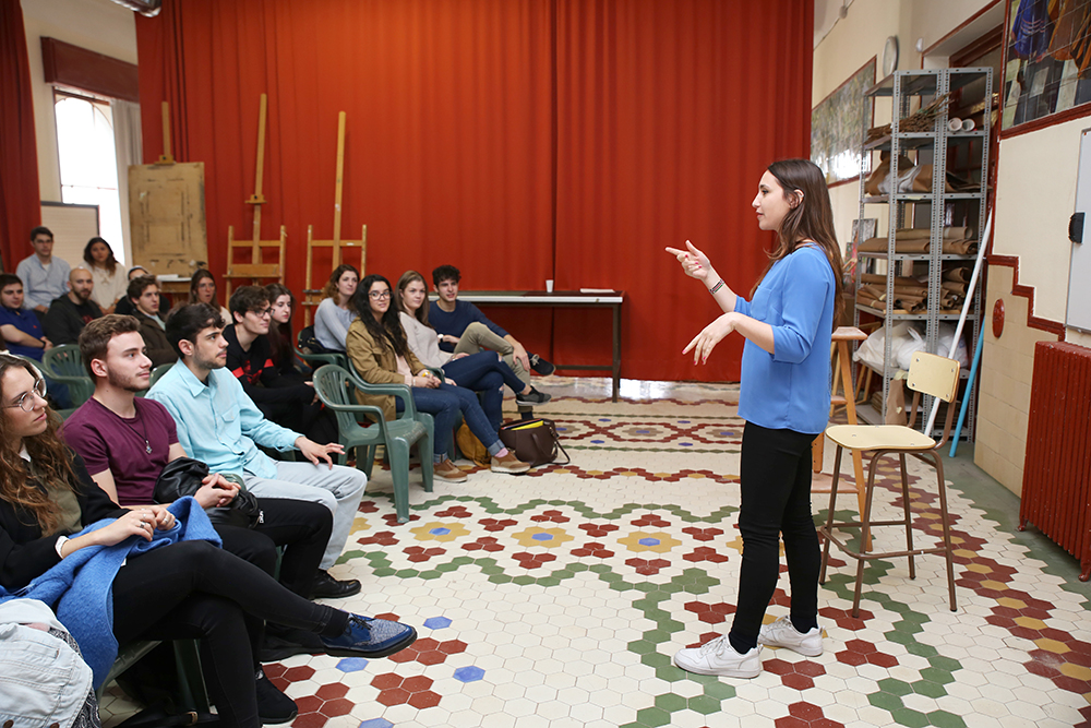 La jornada contó, además, con la participación de la antigua alumna de Diseño Industrial y Bellas Artes, Elisa Cuesta, que instó a los alumnos a dibujar como parte imprescindible de su trabajo: “Dibujando es como se piensa más, es la principal herramienta para vuestro cerebro”. También destacó la necesidad de hacer pruebas con los diseños, porque es ahí donde van a surgir los problemas y donde se podrán poner soluciones. Habló también del carácter multidisciplinar del diseñador y cómo esta característica puede ser muy provechosa de cara a futuros trabajos.