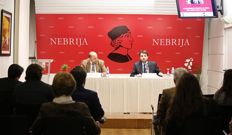 El Club de Antiguos Residentes Nebrija celebró el jueves 23 de marzo un encuentro sobre la situación de la universidad en Europa, que contó con la ponencia La Universidad europea en crisis: una visión desde España, impartida por el rector de la Universidad Nebrija, Juan Cayón.