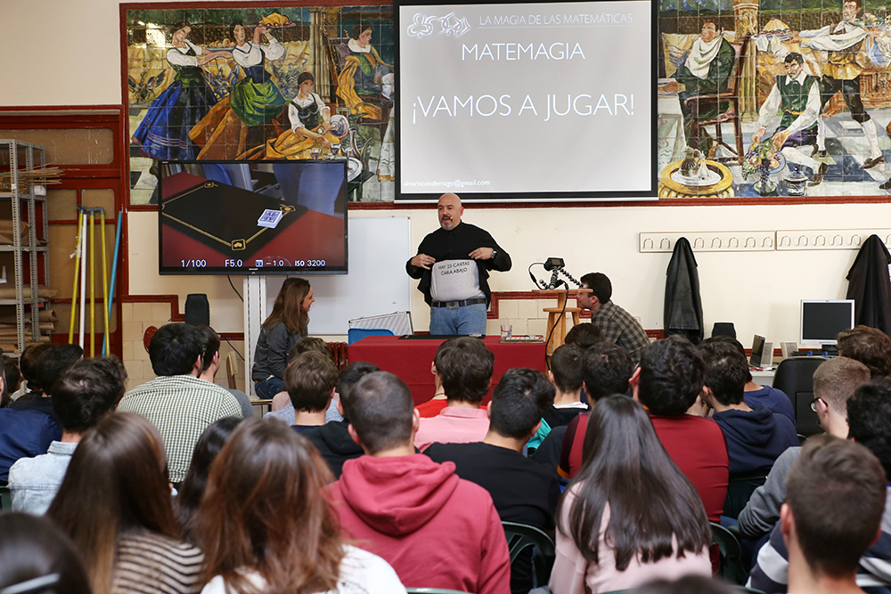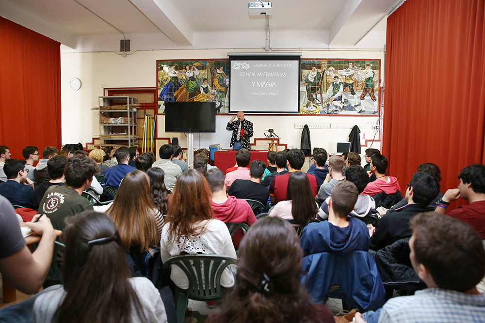 “La magia es el arte de hacer posible lo imposible”. Con estas palabras, Álvaro Conde, maestro de Educación Primaria y mago profesional, comenzó su taller sobre La magia de la ciencia y de las matemáticas, el lunes 27 de marzo en el Campus de la Dehesa de la Villa. En este encuentro, celebrado en el marco de la Semana del Automóvil y la Ingeniería, Conde demostró que, en la educación, ilusión y ciencia forman un buen tándem.