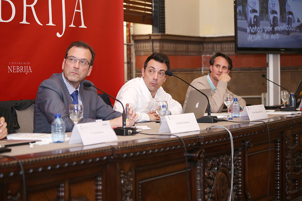 La primera parte de la jornada, Nuevos modelos de movilidad, reunió a expertos de nuevos negocios que ofrecen a los ciudadanos alternativas al vehículo individual y privado para desplazarse por la ciudad. La mesa redonda estuvo formada por Carlos Blanco, director de Marketing y Comunicación de E-mov; Mariano Silveyra, director general de Cabify Madrid, Sevilla y Valencia; Ángel Sánchez, CEO y co fundador de Revoolt, y Sergio López, delegado de eCooltra Madrid.