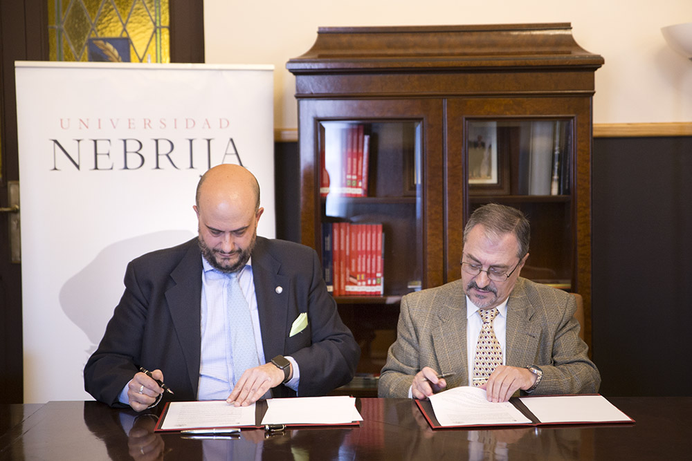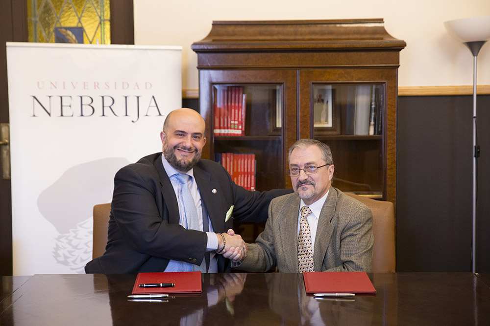 Miguel Ángel Esteso Díaz, presidente de la Federación de Asociaciones de Catedráticos de Universidad, FACU, y Juan Cayon Peña, rector de la Universidad Nebrija, han firmado un acuerdo marco destinado a fomentar una política de colaboración con el objetivo de conseguir una mayor eficiencia en su respectivos campos de acción, aunando esfuerzos para trabajar tanto desde el punto de vista académico como del cultural, para el mejor cumplimiento de sus respectivos intereses con el máximo aprovechamiento de los medios de los que disponen. A este marco de actuación se adaptarán cuantas iniciativas de cooperación en materias de interés común emprendan.